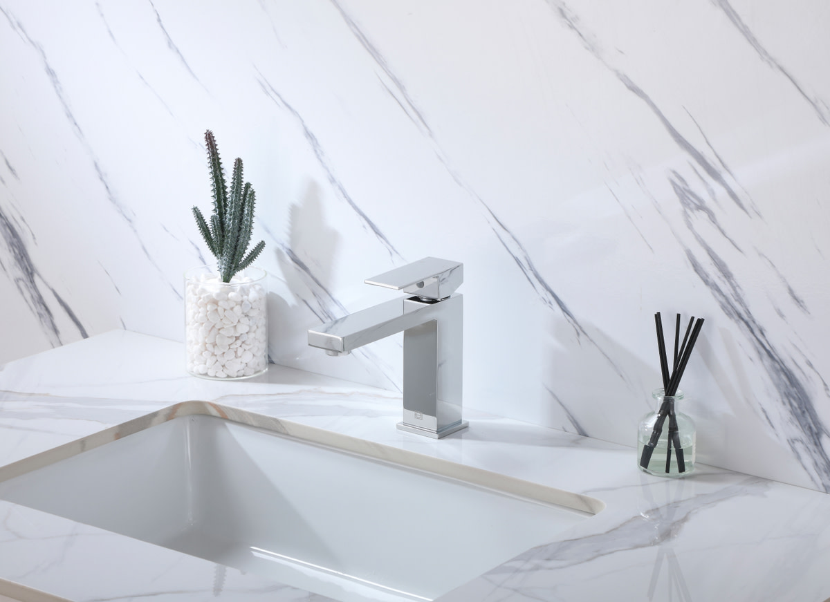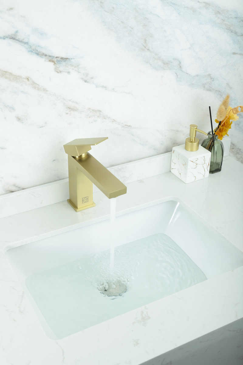 - Single lever handle controls the flow and temperature of water