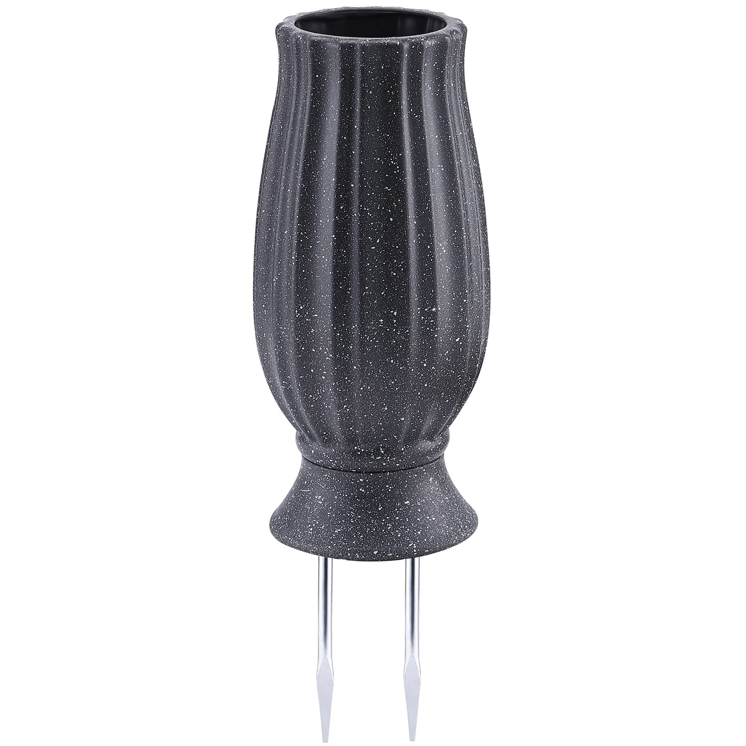 bocola Cemetery Vase with Metal Spike -Headstones Flower Holder Black Granite