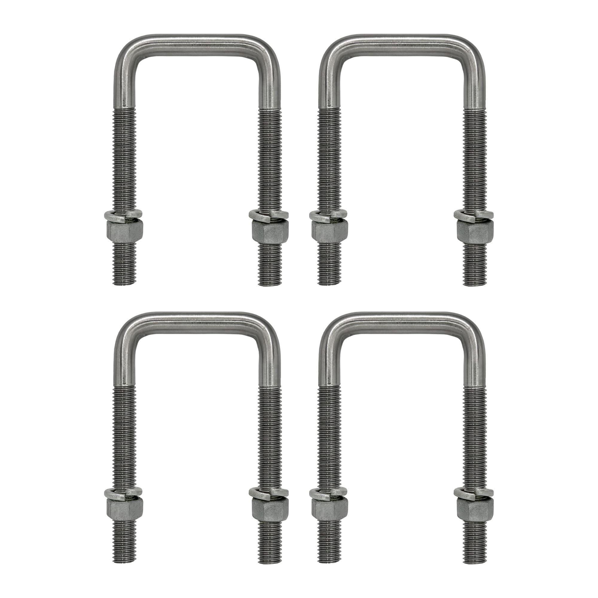 Square U Bolt with Hardware for Boat Trailer, 4 and 8 packs - 1/2 D x 3-1/16 W x 4-5/16 Inch - 1/2 D x 3-1/16 W x 3-5/16 Inch - 1/2 D x 2-1/8 W x 4-3/4 Inch - 1/2 D x 2-1/8 W x 6-5/16 Inch - 3/8 D x 1-5/8 W x 3-3/8 Inch - 1/2 D x 3-1/16 W x 7-5/16 Inch