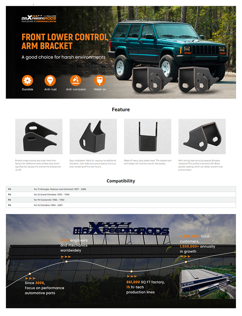 Mount brackets are designed to replace and upgrade the worn out, cracked, or bent front lower control arm mounts for your Jeep.