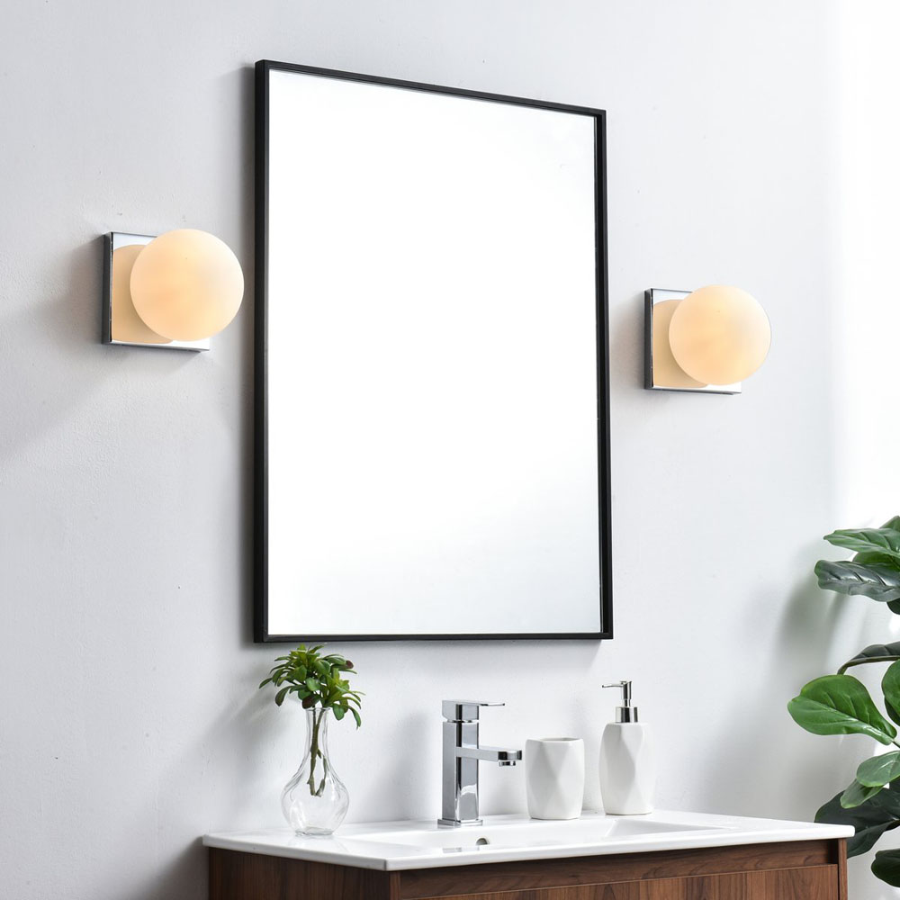 Item DescriptionAn art deco staple with a modern update in this stunning light bath square base. Made of iron, this simple yet sophisticated design showcases a clean-cut square backplate with an oversize frosted glass to balance the look. Rated for use in damp locations, this will work perfectly over a vanity using 40W bulbs ( not included). Compatible with dimmers, so you'll have the right amount of light in any given time of the day.