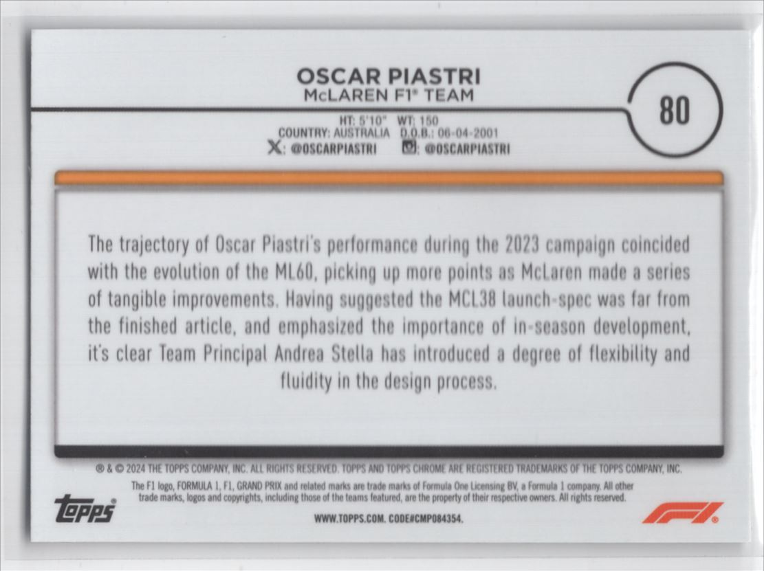 #80 2024 Topps Chrome Formula 1 SEPIA ] Oscar Piastri McLaren F1