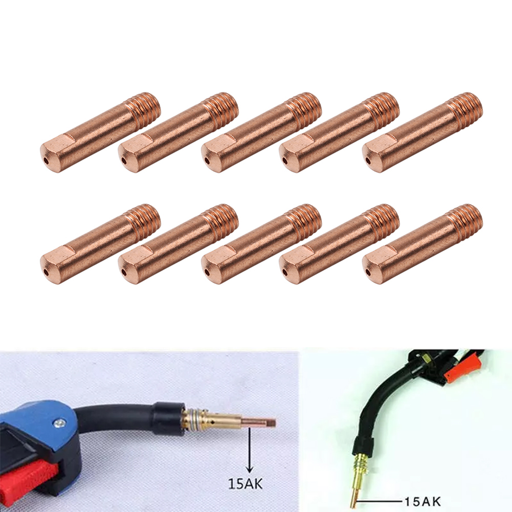 Kontaktspitzen M6 Gasdüsenmantel 0,6-1,2mm MB 15AK MIG/MAG Schweißen English: Contact Tips M6 Gas Nozzle Shroud 0.6-1.2mm MB 15AK MIG/MAG Welding Features: 1. Brand new and high quality 2. Made of high-quality materials, durable 3. Make the welder feel comfortable during the welding process 4. The consumables for these plasma cutting torches are replacement parts, not original parts Specification: Consumables type: Contact tip Material: Copper Color:As Pictures Shown Optional Aperture: 0.6mm/0.8mm/0.9mm/1.0mm/1.2mm(Approx) Wire mouth: M6*1 Quantity:10pcs Others: OEMed Product, not original Package Included: 10x tips 0.6mm/0.8mm/0.9mm/1.0mm/1.2mm (Optional) Notes: 1. Please do check our product photos in the link whether it's the same as your old part. 2. Please allow slight manual measurement deviation for the data