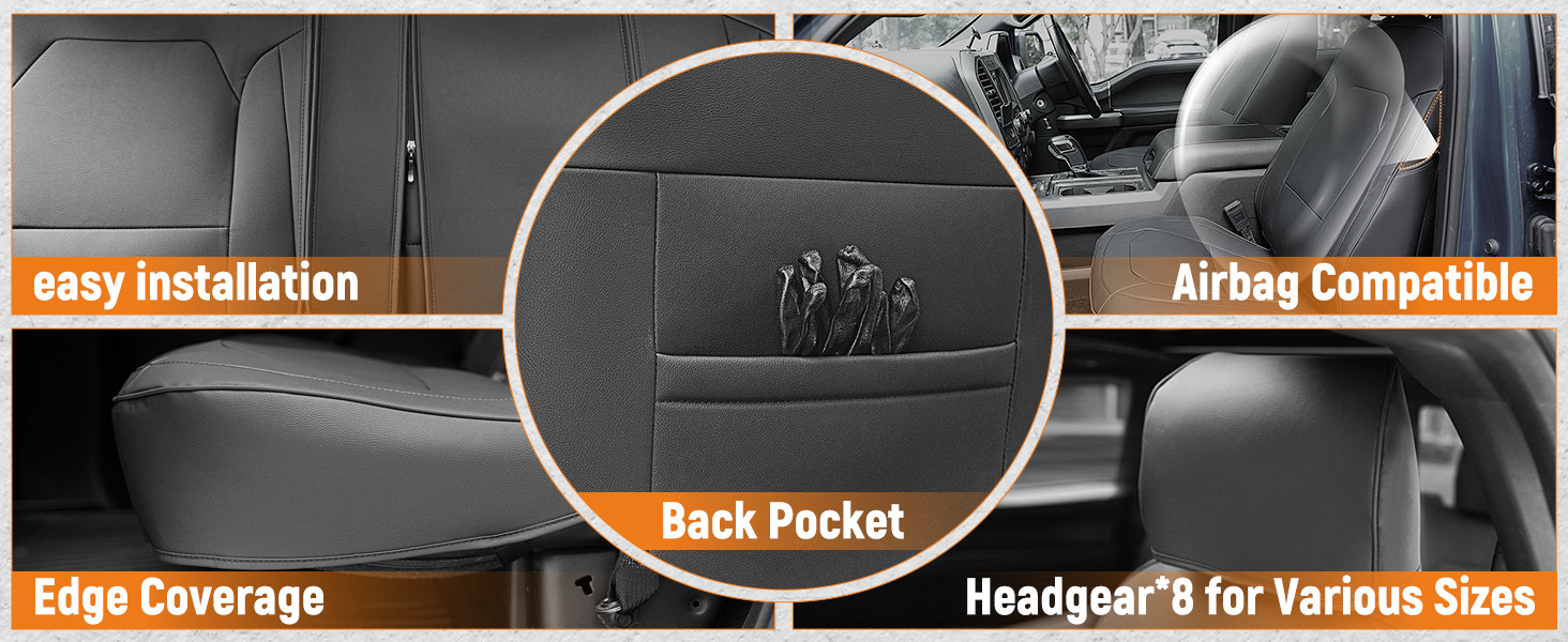 The F150 seat covers will not interfere with any interior components of the vehicle, such as seat belts, armrests, and storage pouch areas. Enhance the style and safety of your car with our seat covers!