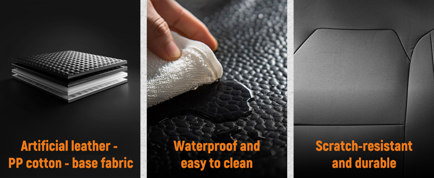 Our car seat covers are made from high-quality synthetic leather, featuring breathable and waterproof design, ensuring sweat absorption, breathability, and comfortable touch for your car seats.