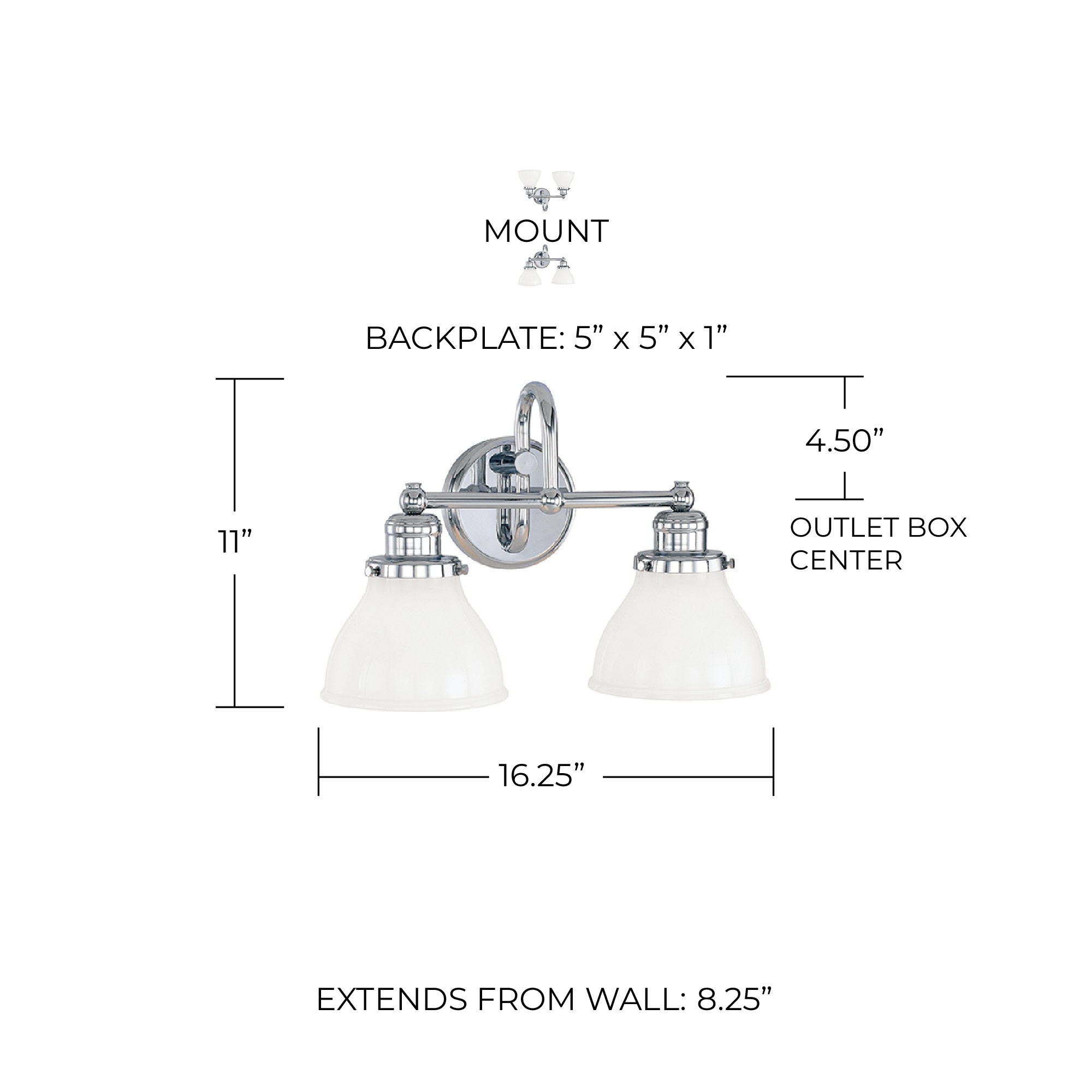 Item DescriptionFor a bath fixture that's easily coordinated with other elements in your space, try the Baxter 2-light vanity. The Baxter creates an overall aesthetic that's elegant, refreshing and welcoming.