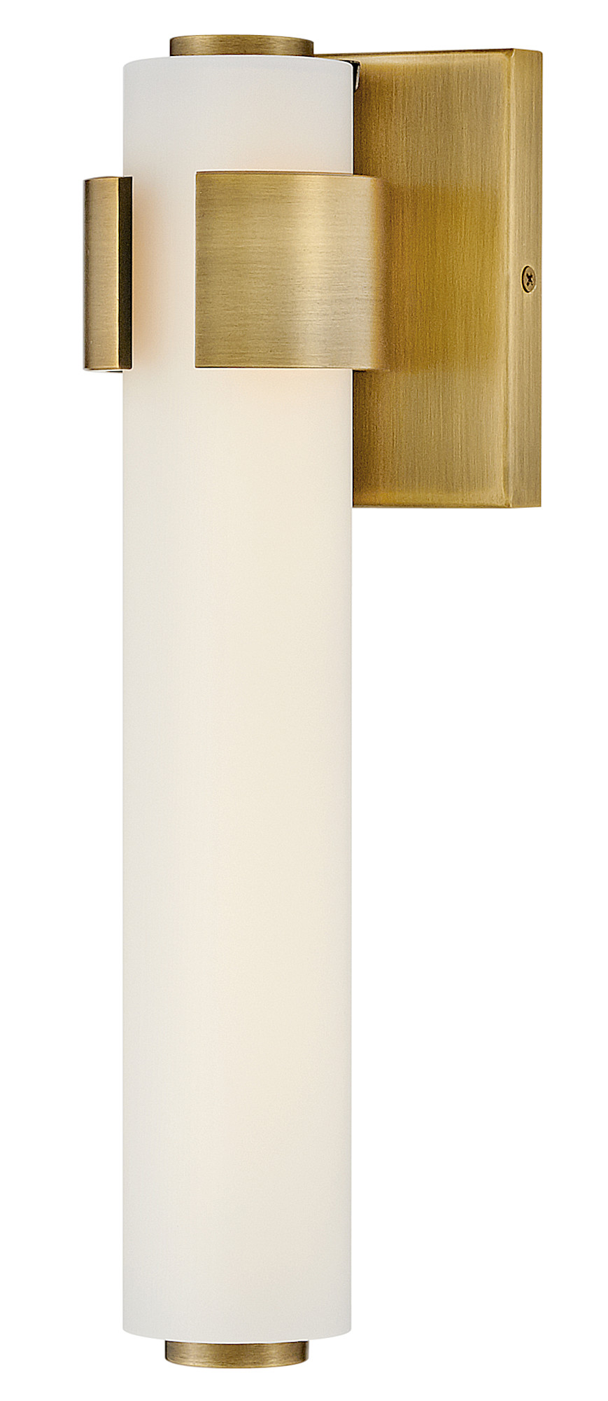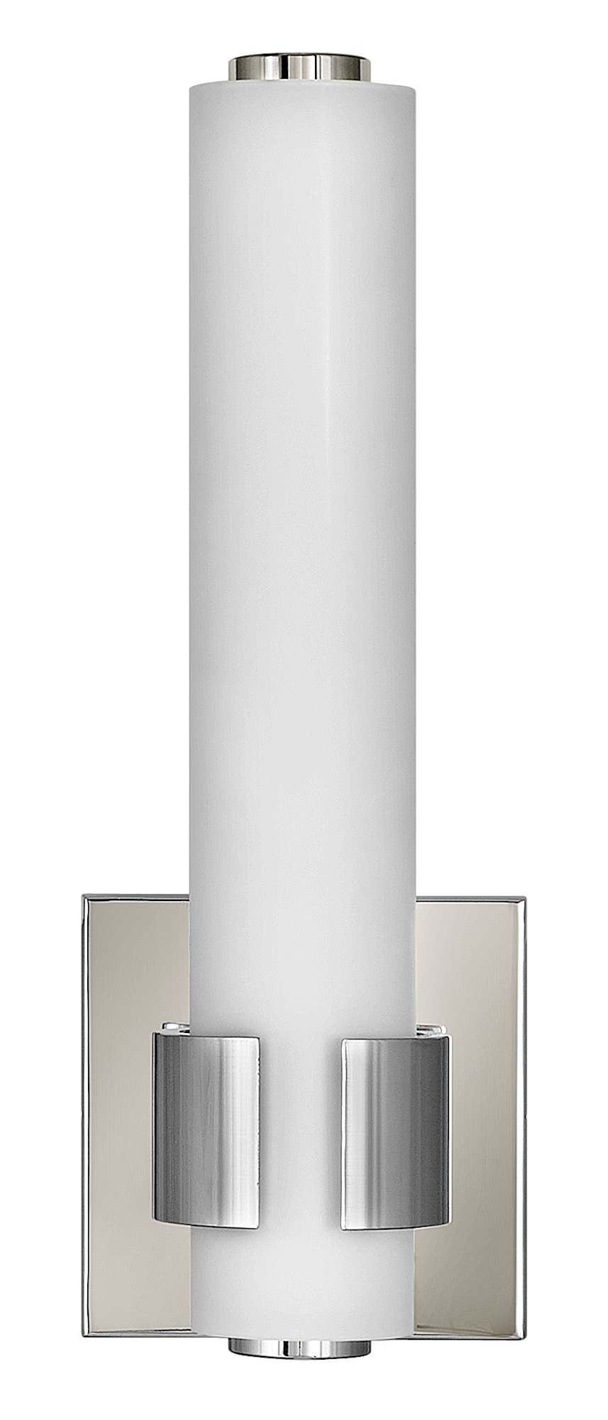 Item DescriptionBold and balanced are the defining elements of Aiden. A striking, signature cuff centers the etched white glass baton, while matching end caps complete the simple symmetry. The clean transitional silhouette can be mounted vertically or horizontally with Invisimount for a look that is as flexible as it is fashionable.