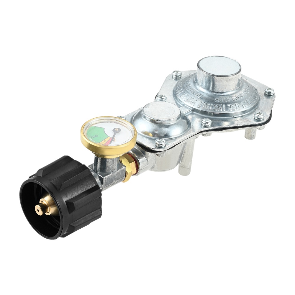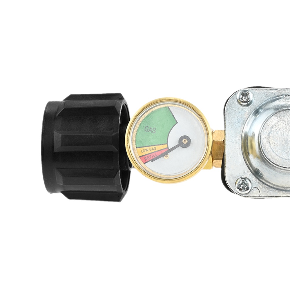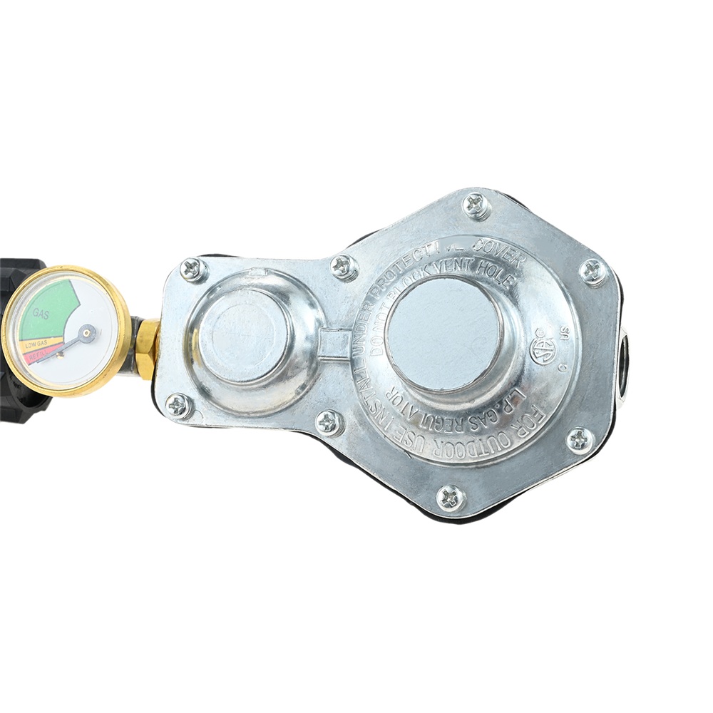 • Features:  1, Made of Brass and high-quality zinc alloy for enhanced durability and corrosion resistance.  2, Features a QCC1/Type 1 connection on one end and a 3/8-inch Female NPT connection on the other.  3, Upgraded with a gauge, so that you can easily monitor the gas pressure!  4, Outlet Pressure: 11" W.C, BTU: 180,000/hr.  5, The regulator handwheel end fits all 5-40 lb propane tanks.  6, The 3/8-inch Female NPT connector at the other end allows flexible connection to propane hoses of any length.  7, The two-stage propane regulator excels in gas flow and pressure control.  8, It ensures a consistent gas flow while minimizing fluctuations caused by temperature or tank pressure changes.