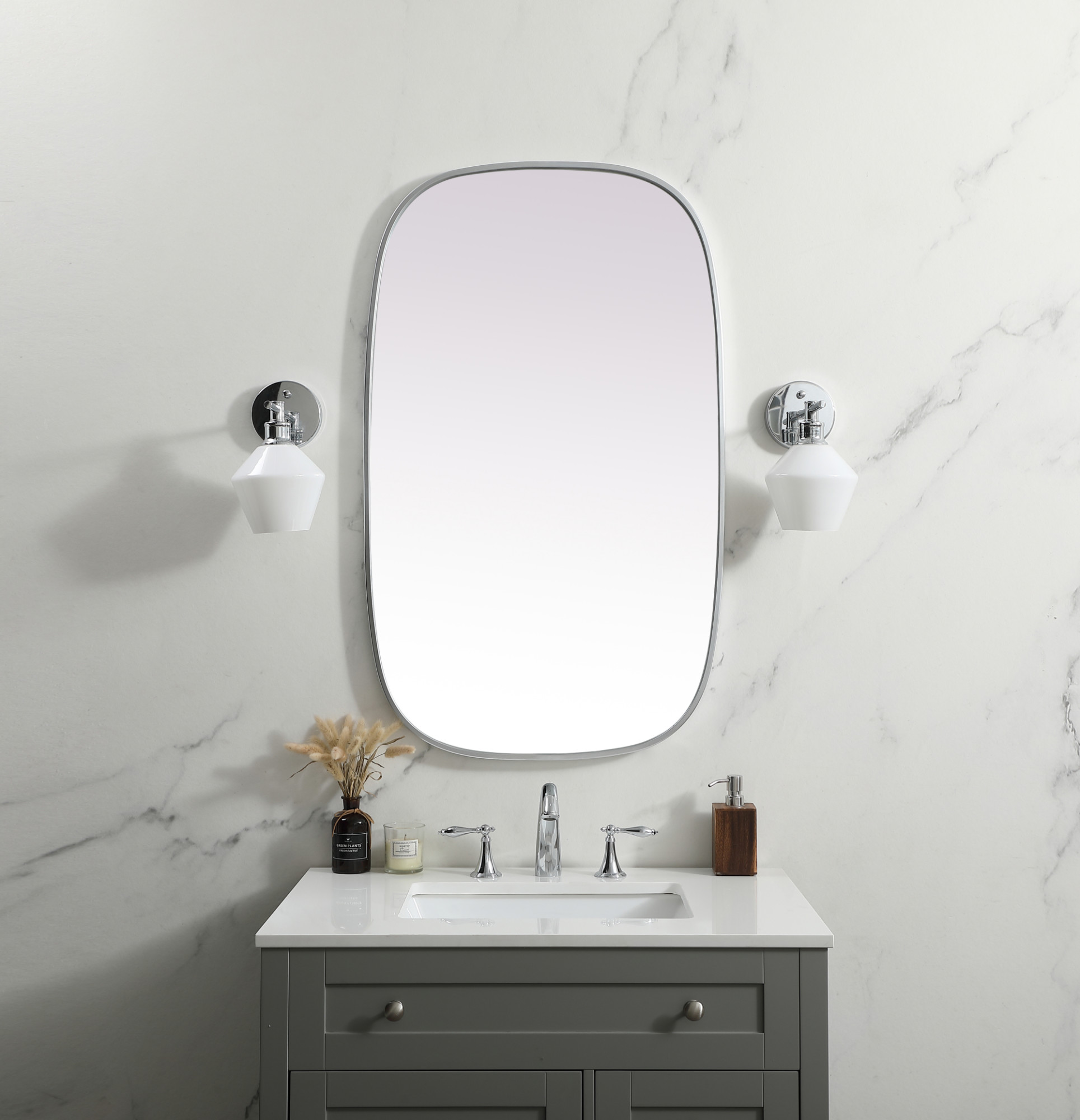 Item DescriptionCrafted of metal, this mirror strikes a rounded corner silhouette. Instantly open up any space in your home with this minimalist wall-mounted mirror. Its slender, clean-lined frame sports a classic finish, while the glass mirror within features a flat, for a brilliant reflection, letting the light bounce off to expand your space. Designed in an oblong shape. Mount this work of art in any room of your choice for added visual impact.