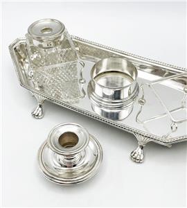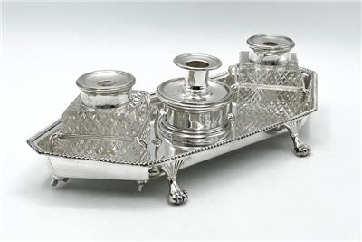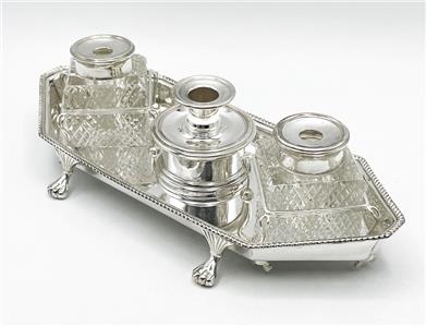 DescriptionDESK INKSTAND SILVER PLATED ANTIQUE LION PAW FEET