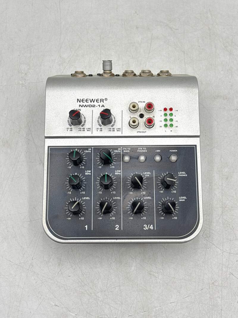 This Neewer NW02-1A Economy Mixing Console features a sleek silver and black design. It is in good uséd condition and has been tested to ensure full functionality, making it a reliable choice for any audio project.