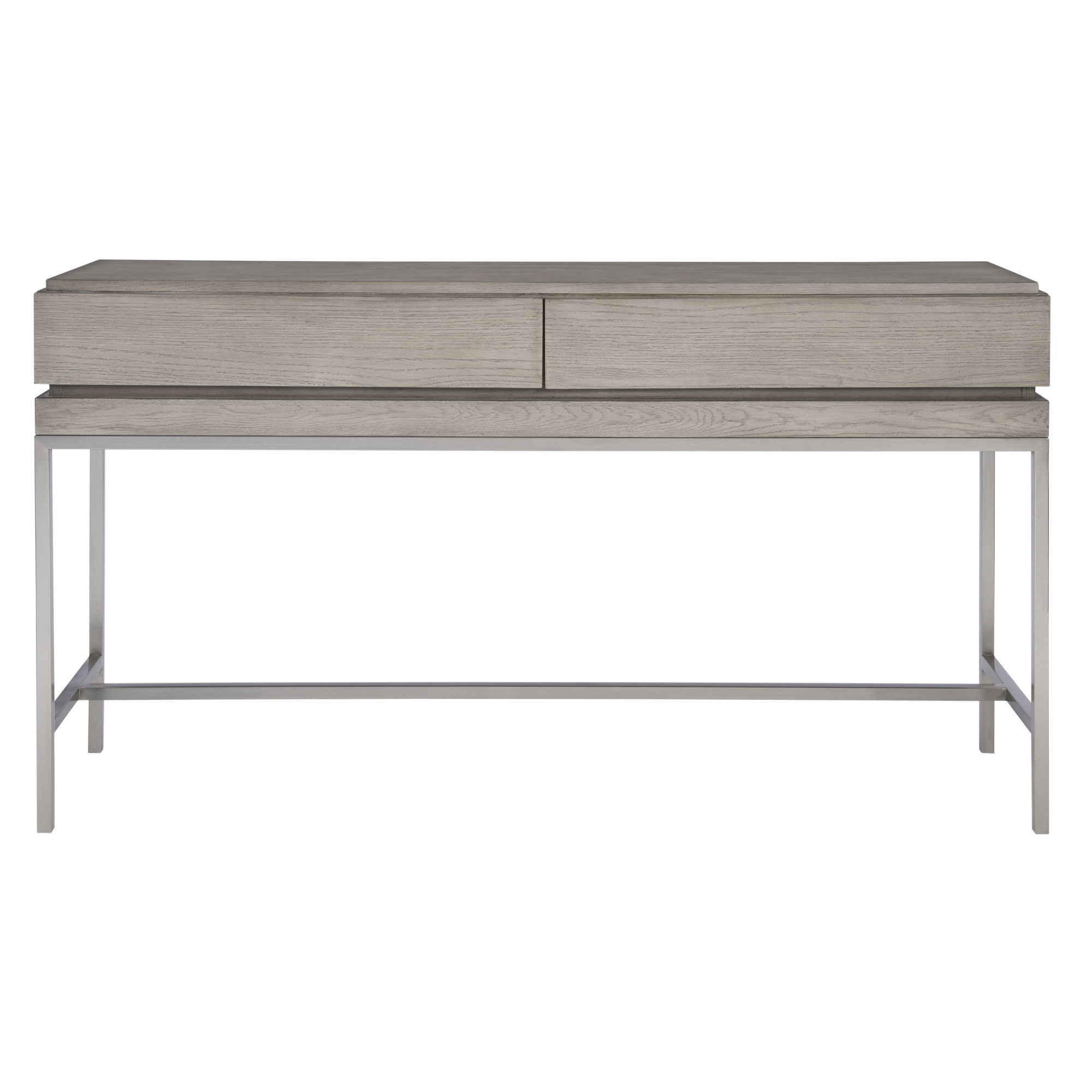 - With modern simplicity, this console table is layered in an oak veneer featuring 2 hidden storage drawers