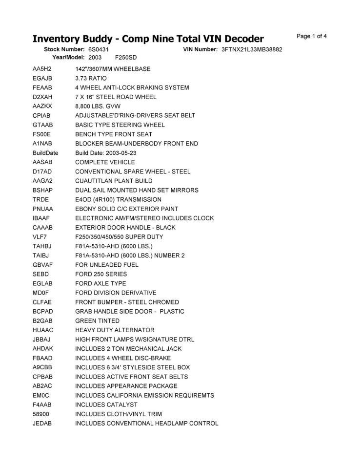 FORD F150 PICKUP 04 Heritage, 6-255 (4.2L)