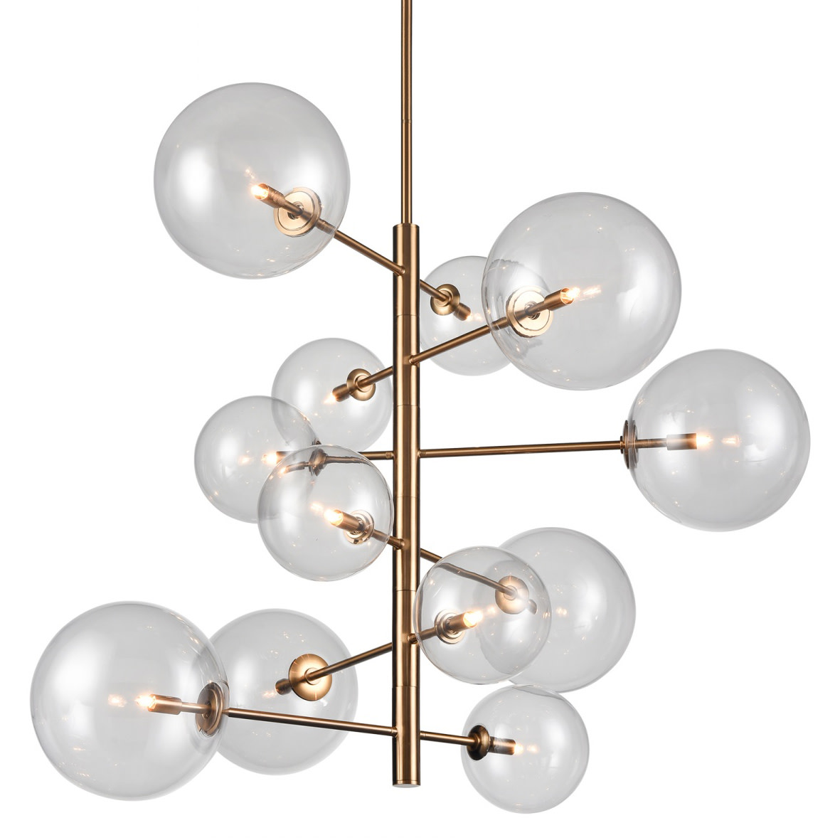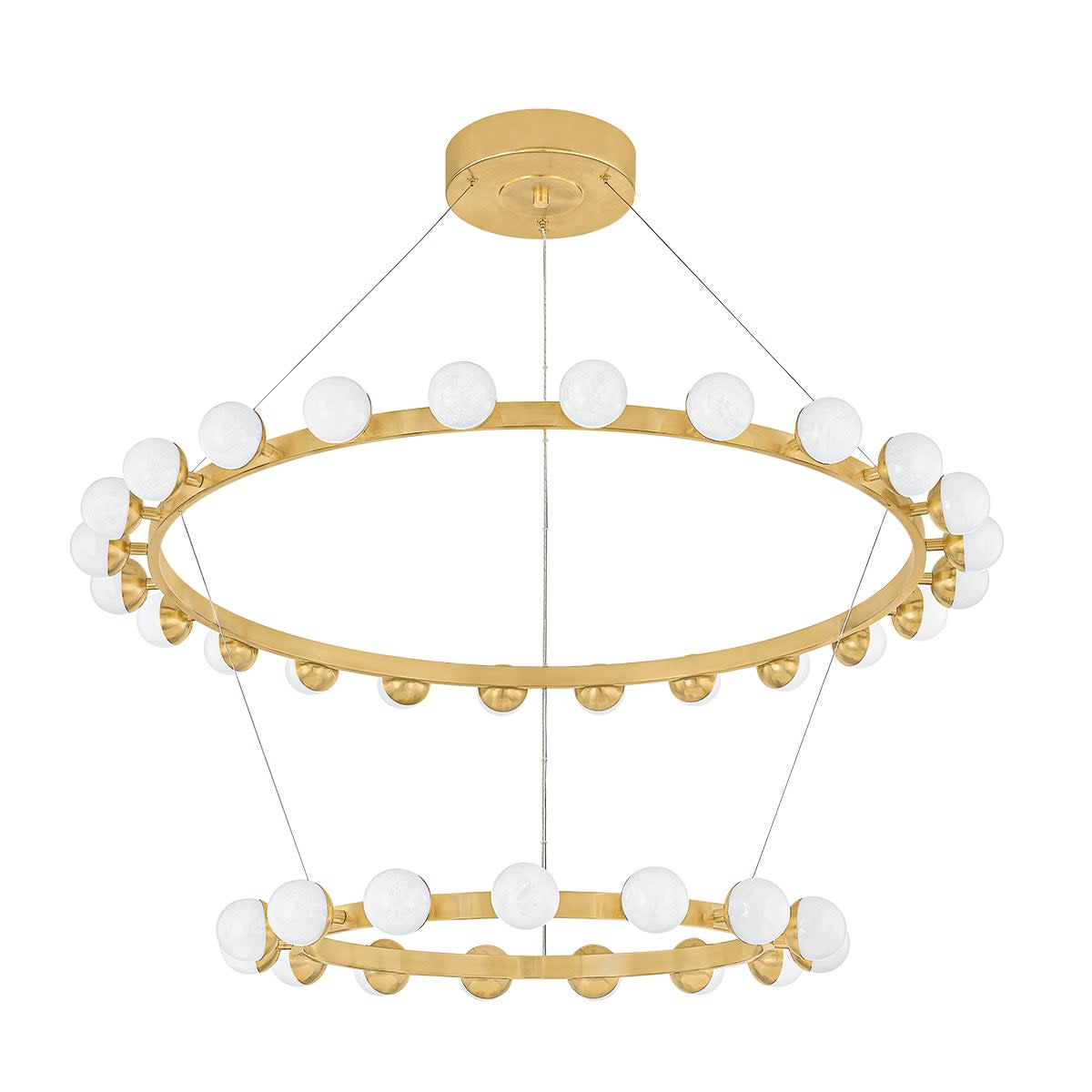 Item DescriptionElements of repetition and scale are skillfully balanced in the Linus chandelier to create a striking visual impact. The concentric rings that form the framework support a series of globes. Marked by a unique, crackled effect, the antique quality of the glass adds an air of artistry. What sets this family apart is its versatility: despite the five distinct options, only three rings are used to create an array of configurations.
