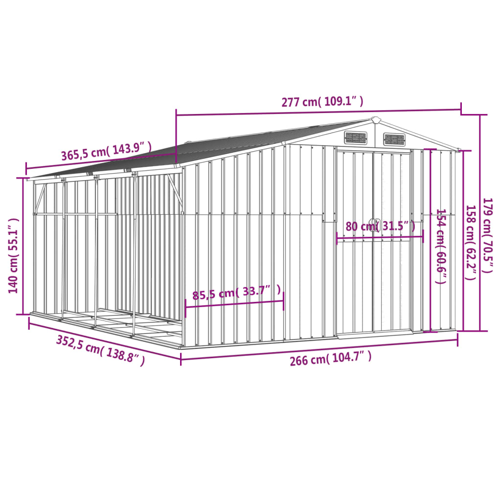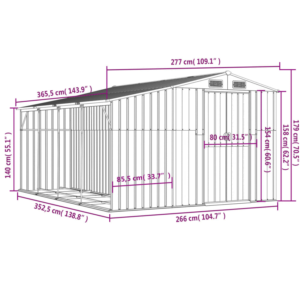 Abri de jardin gris 277x93x179 cm acier galvanisé rangement de jardin vidaXL