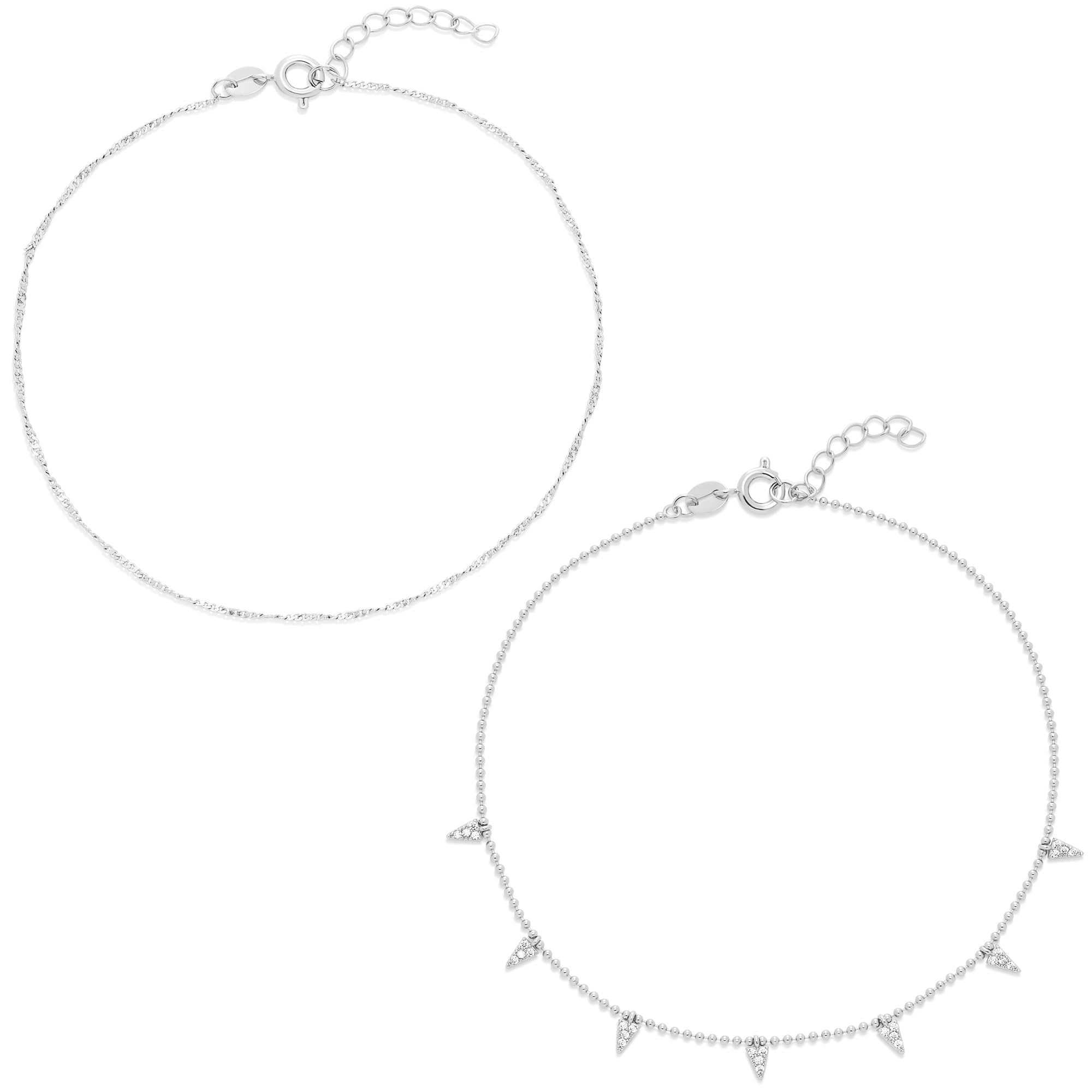 • STYLE: This Silver Plated Diamond Cut Twisted Chain and Pave Stations Anklet Set is 9" + 1" Extender; the anklets have a delicate and elegant design that adds a touch of glamour to any outfit