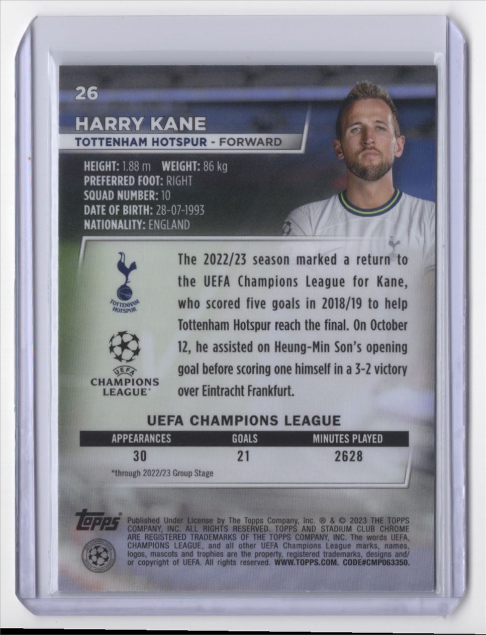 | 2022 Stadium Club Chrome UEFA Competitions * Harry Kane Tottenham Hotspur #26 | ||||||||||||||||||