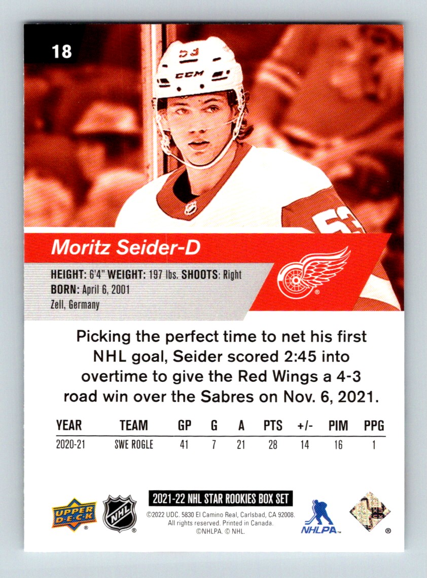 #18 Moritz Seider 2021-22 Upper Deck Star Rookie * RC Red Wings