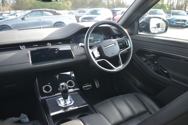 This 2021 Range Rover Evoque D200 R Dynamic SE boasts a clear vehicle history and has been owned by just one person. This Euro 6 compliant, four wheel drive model features a 2.0 litre diesel engine and comes with a partial service history. Notable features include a rear view camera with parking assistance, front and rear parking aid with sensors, Apple CarPlay integration, automatic headlights, and two zone climate control for your comfort. With an impressive fuel economy of 43 miles per gallon and a swift 0 to 60 miles per hour acceleration time of just 7.9 seconds, this Evoque demonstrates superior performance and efficiency compared to other vehicles in its class. These highlights underscore the exceptional value and capability offered by this well maintained Range Rover. We offer Click & Collect and Click & Deliver anywhere in the UK. You can reserve this vehicle for just £99, this is fully refundable if you do not purchase the car. Previous Keeper(s) Guidance This car may have been previously owned by a car leasing company and may have had more than one driver. For specific details please speak to a member of our team. .Apple CarPlay, Automatic Headlights, Cruise Control and Speed Limiter, Powered Tailgate, Lane Keep Assist, 12-Way Heated Electric Driver Memory Seats with 2-Way Manual Headrests, 20in Alloy Wheels - 5 Split-Spoke - Style 5079 - Gloss Sparkle Silver, 40-20-40 Folding Rear Seats, ABS - Anti Lock Braking System, ATPC - All Terrain Progress Control, Airbags - Front - Driver and Front Passenger, All Season Tyres, Ambient Interior Lighting, Android Auto, Animated Directional Indicators, Apple CarPlay, Approach Lights, Auto-Dimming Interior Rear View Mirror, Automatic Headlight Levelling, Automatic Headlights, Blind Spot Assist, Bluetooth Connectivity, Body Coloured Roof, Brake Pad Wear Indicator, Bright Metal Pedals, Cabin Lighting, Carpet Mats, Chrome Treadplates, Clear Exit Monitor, Cruise Control and Speed Limiter, Customer Configurable Autolock, DAB - Digital Audio Broadcast, DSC - Dynamic Stability Control, Driver Condition Monitor, EBA - Emergency Brake Assist, EBD - Electronic Brake-Force Distribution, EPAS - Electronic Power Assisted Steering, ETC - Electronic Traction Control, Efficient Driveline, Electric Parking Brake, Electric Windows with One-Touch Open-Close and Anti-Trap, Emergency Braking, Evoque Badge, Flush Deployable Door Handles, Front and Rear Parking Aid, HDC - Hill Descent Control, Headlights - Automatic High Beam Assist, Headlining - Ebony Morzine, Heated Electric Power Fold Door Mirrors with Approach Lights and Auto-dimming Driver Side, Hill Launch Assist, Interactive Driver Display, Intrusion Sensor, Lane Keep Assist, Locking Wheel Nuts, Low Traction Launch, Manually Adjustable Steering Column, Online Pack with Data Plan, Overhead Lighting Console, Overhead Stowage for Sunglasses, Passive Front Headrests, Passive Suspension, Perforated Leather Steering Wheel, Pivi Pro - Connected, Power Operated Child Locks, Power Socket Pack 1, Powered Tailgate, Premium LED Headlights with Signature DRL, Push Button Start, R-Dynamic Exterior Pack, RSC - Roll Stability Control, Rain Sensing Windscreen Wipers, Rear Air Vents, Rear Fog Lights, Rear ISOFIX, Rear View Camera, Remote, Satin Chrome Gearshift Paddles, Seat Belt Reminder, Secure Tracker (12 Month Subscription From New), Sound System, Standard Roof, Sun Visors - Illuminated Vanity Mirrors, TPMS - Tyre Pressure Monitoring System, TVBB - Torque Vectoring by Braking, Tailgate Spoiler, Terrain Response 2, Touch Pro Duo, Traffic Sign Recognition and Adaptive Speed Limiter, Trim Finish - Gradated Line