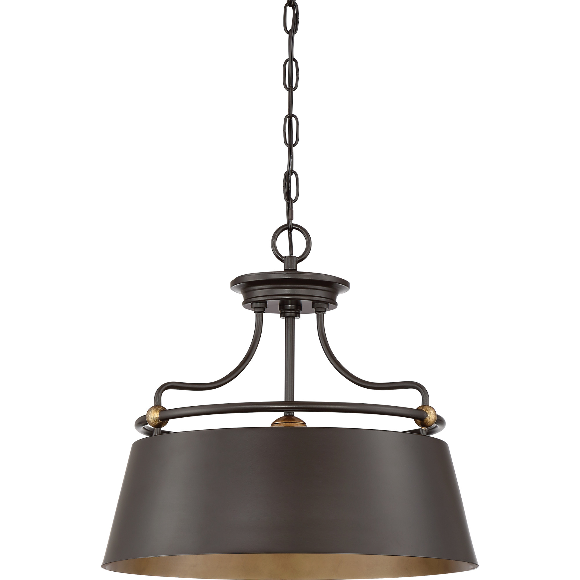 Item DescriptionA softly curved frame and simple drum create quite a statement with the Fairview Pendant. The rich western bronze finish on the frame and exterior of the shade emphasizes the brassy highlights on the ball accents.
