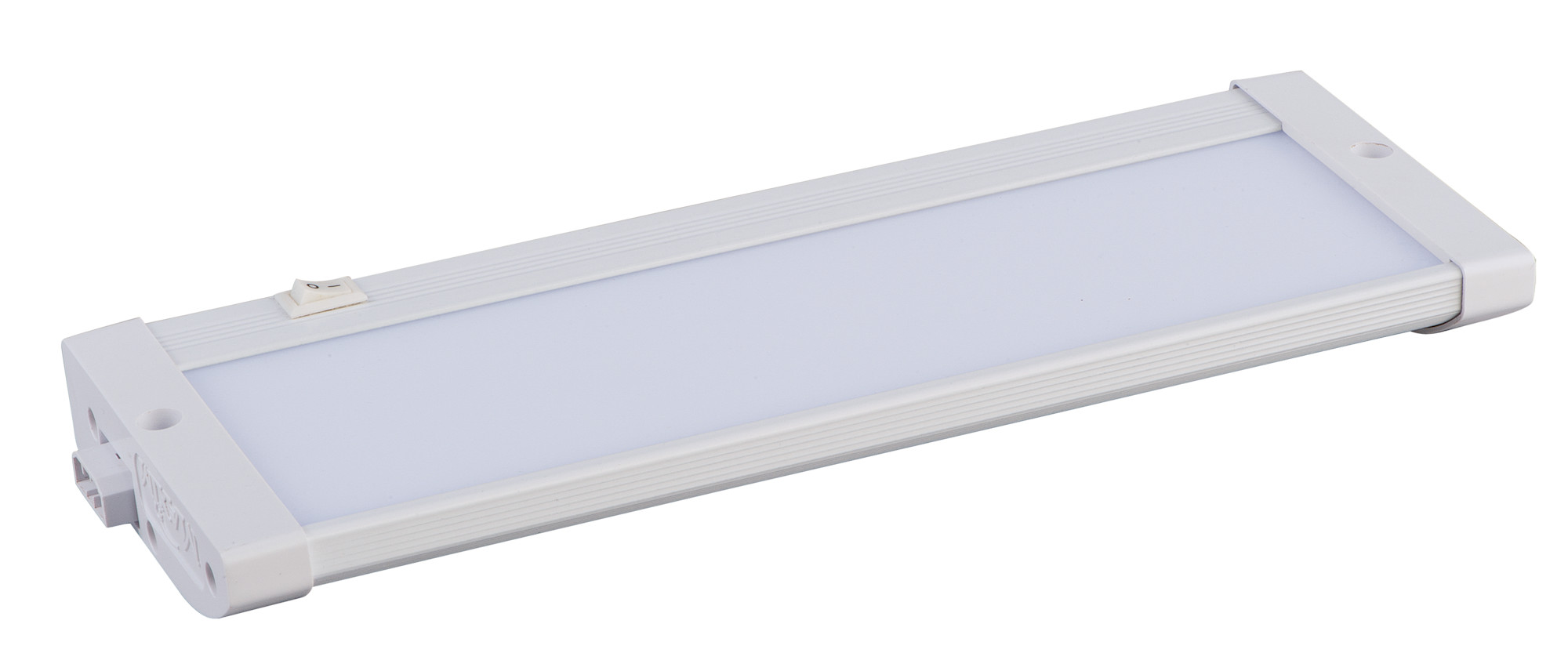- Installs easily under a cabinet and emits a warm white light