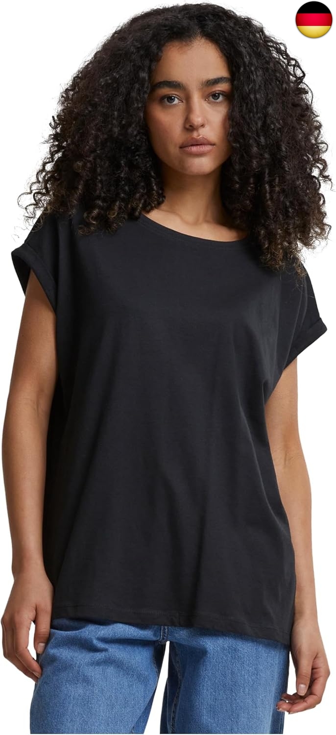 Das neue Multitalent im Kleiderschrank: Es braucht nur ein paar feine Details, damit aus einem einfachen Shirt ein echtes Lieblingsteil wird. Das Ladies Extended Shoulder Tee von URBAN CLASSICS aus 100 % Baumwolle hat es mit lässig fallendem Drop-Shoulder-Schnitt und stylischen Turn-up-Ärmeln längst zum Urban Classics Bestseller gebracht – zu Recht, denn im Alltag kannst du dieses entspannte Shirt beinahe universell zu sportlichen Looks kombinieren. Außerdem passt dieses Top perfekt auf eine sportliche Leggings und sorgt für einen bequemen und trotzdem schicken Look beim Workout oder beim Joggen. Ob als Streetwear oder Sportswear - dieses Shirt ist die richtige Wahl.