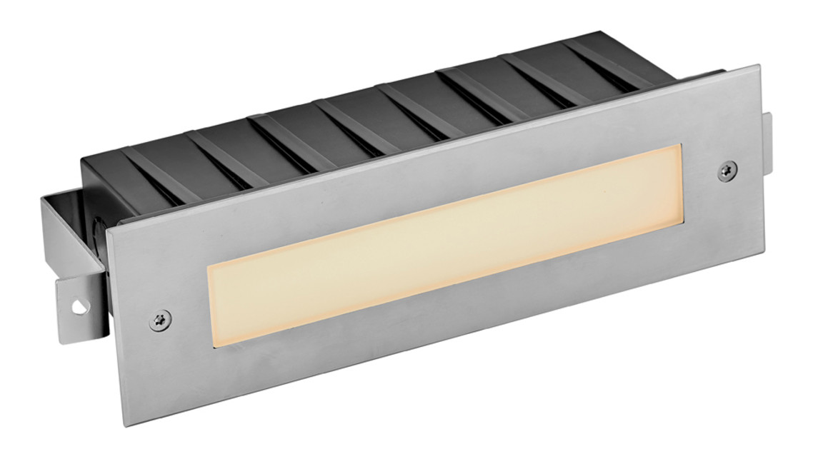 Dash LED brick lights deliver sleek style, safety and security in a powerful package. Available in small and large sizes, as well as flat and louvered versions. Dash has a cast 316 stainless steel faceplate equipped with frosted glass for soft illumination.