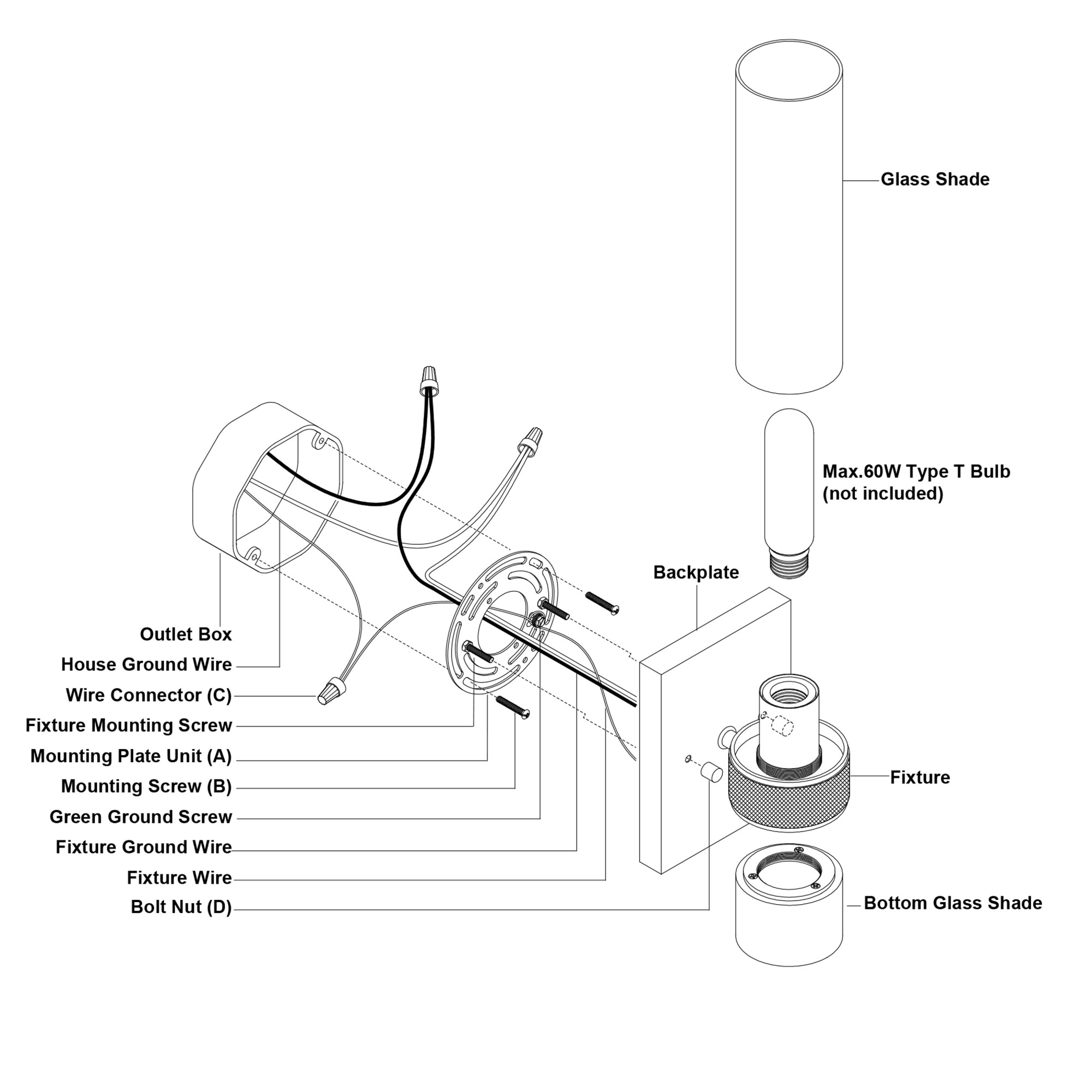 - Requires (1) 60 watt medium (E26) bulb