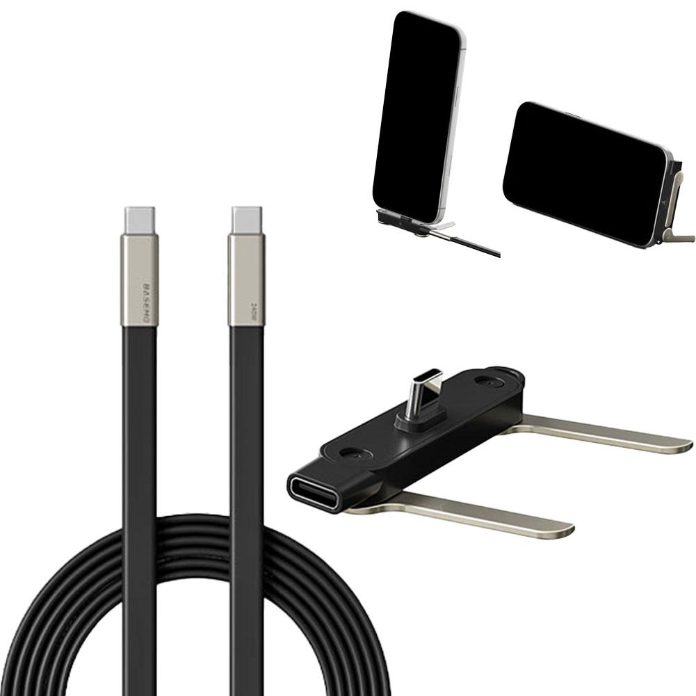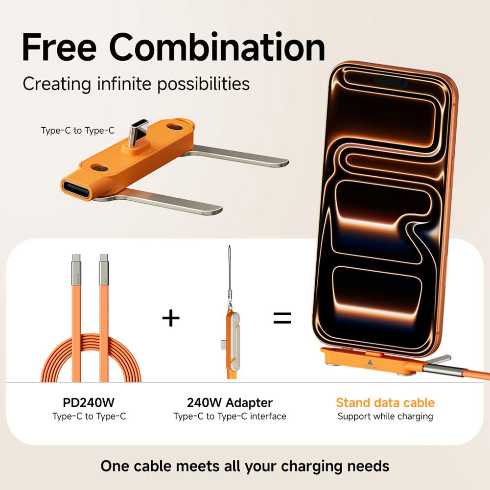 4. Innovative Stand Integration: Discover extreme versatility with our unique combination design. This product includes a high-power Type-C to Type-C cable and a clever folding adapter. When combined, they form a functional stand data cable, providing a steady base for your phone while it charges and transmits data efficiently.