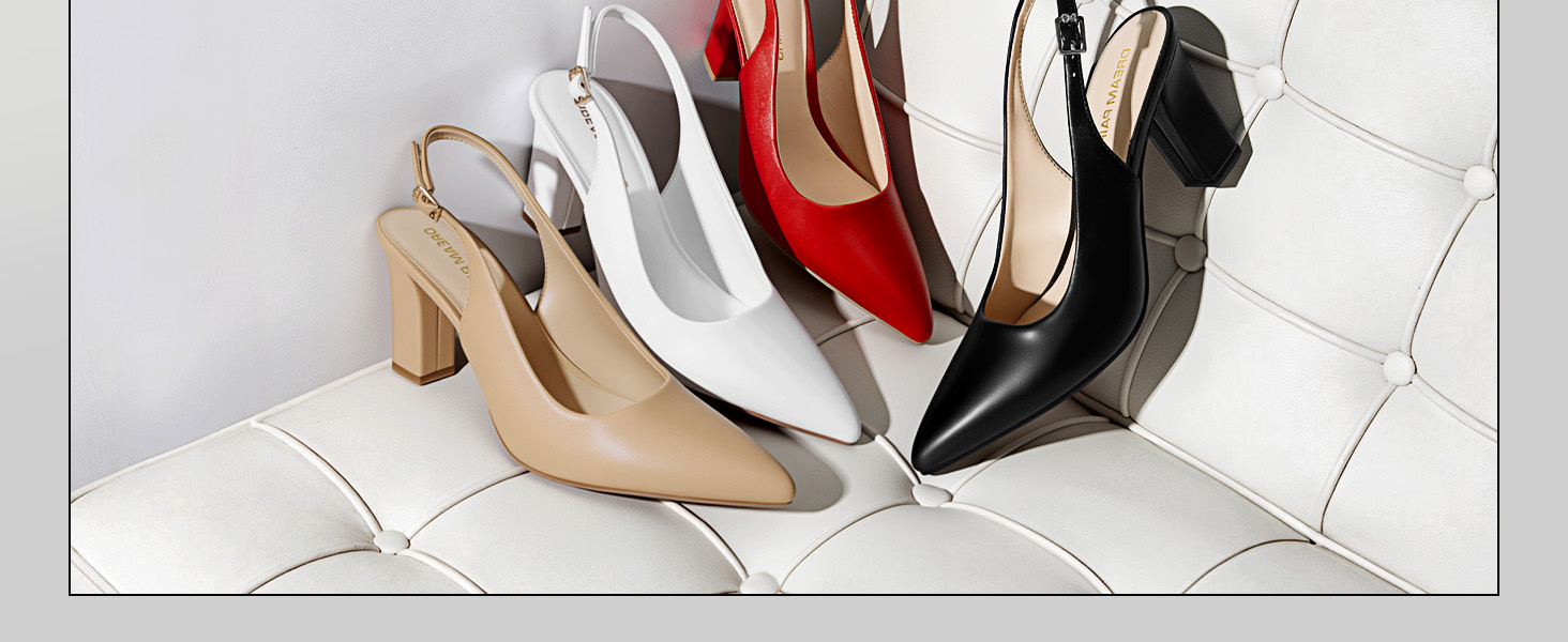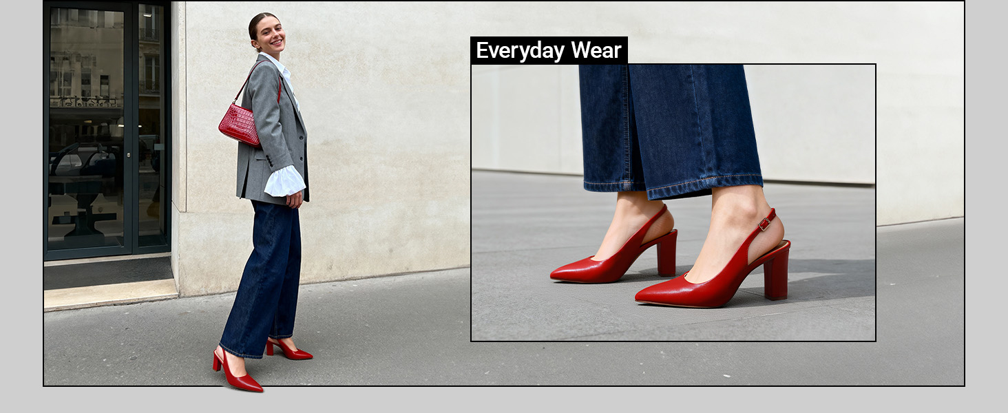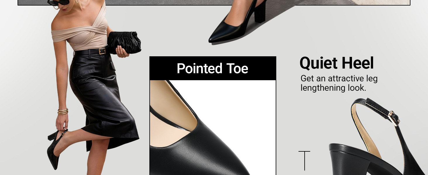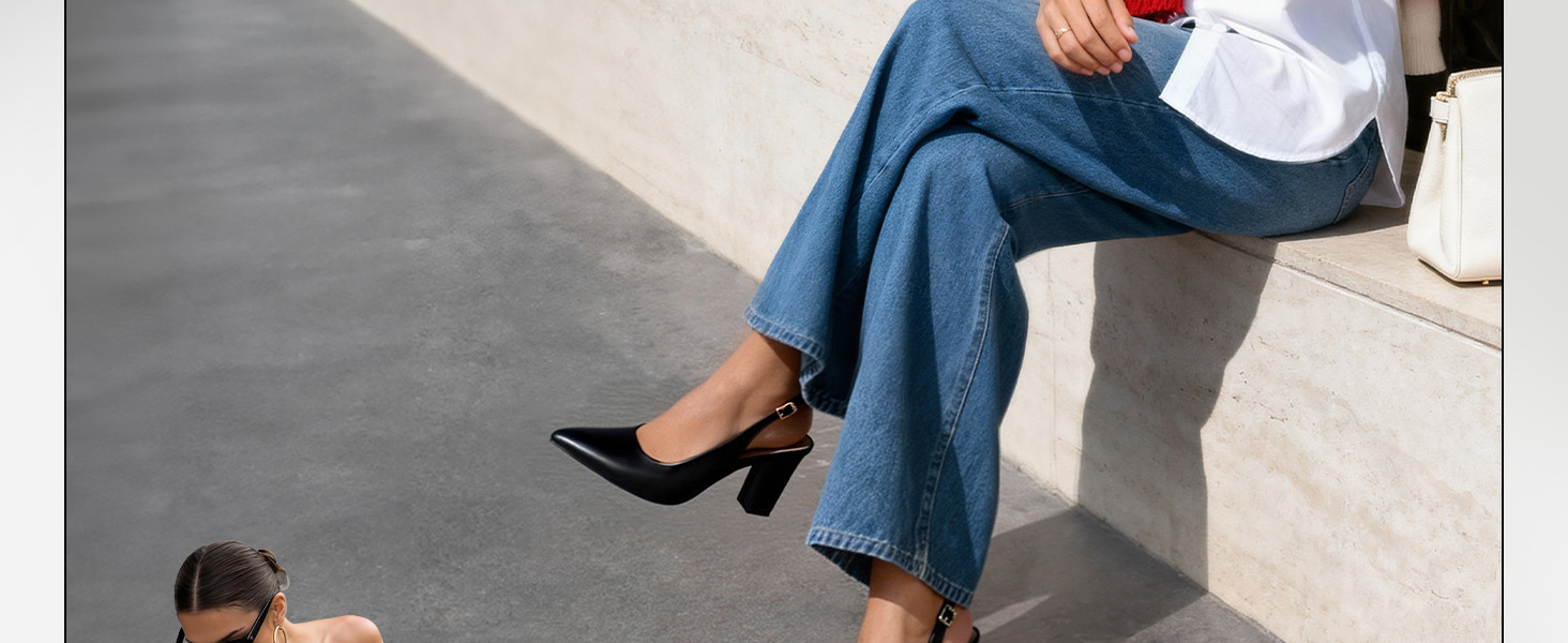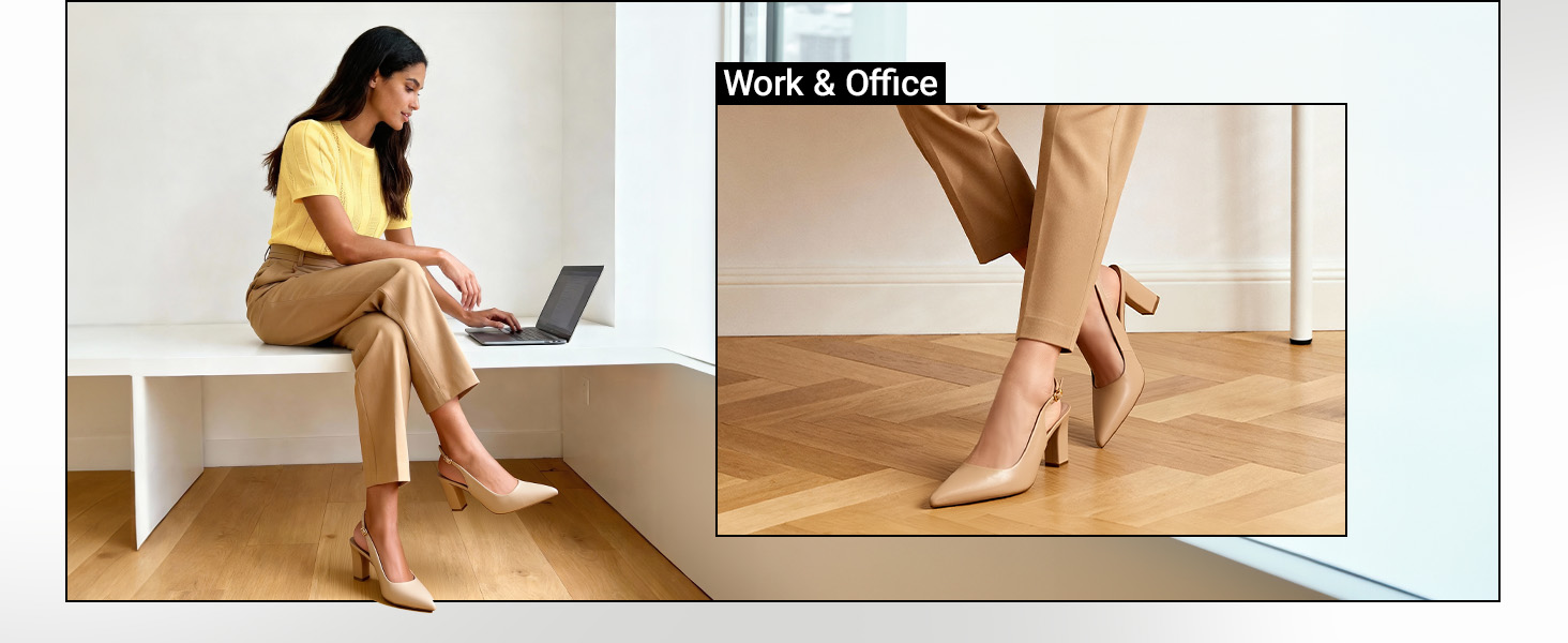 • Chic Slingback Style: Sleek design pairs easily with trousers, skirts, or dresses.