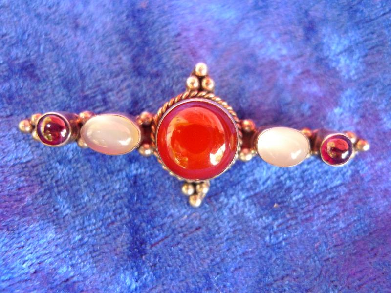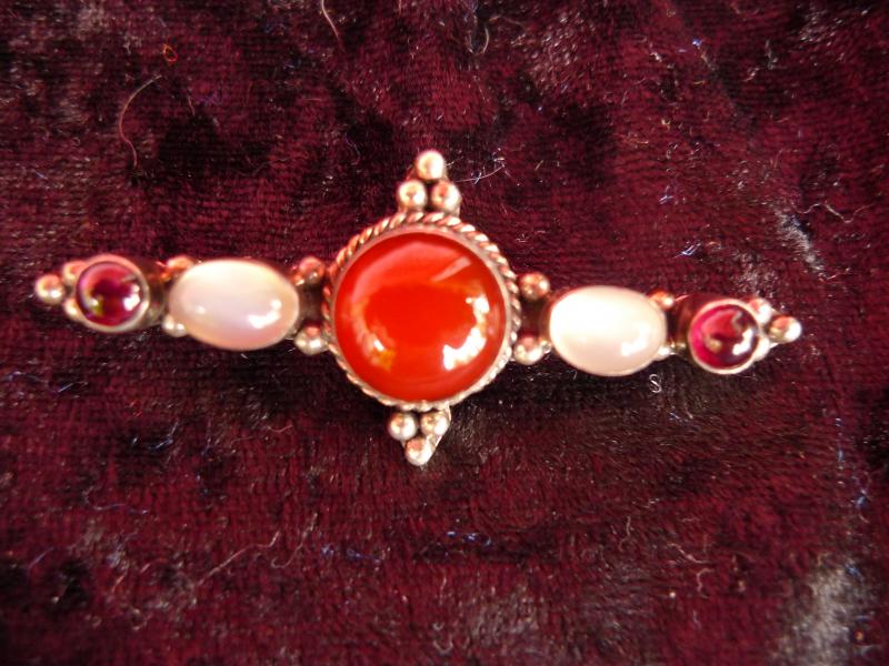 Molto Bella, Vecchia Spilla, 925 Argento Con Bellissime Pietre, Spilla Da Giacca