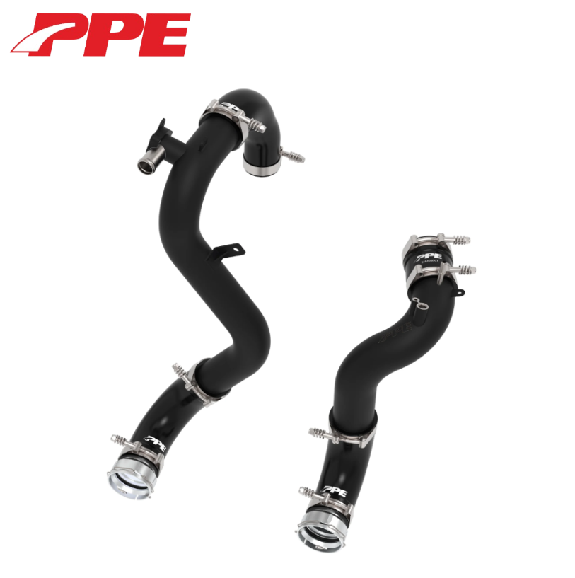 The 2-inch hot side/2.2-inch cold side factory intercooler piping adds restriction to the intake system due to insufficient sizing and tight bends. The PPE charge pipe kit features 2.5-inch hot side pipe and 2.75-inch cold side pipe, increasing the cross-sectional flow area by 50% on both sides, eliminating factory restrictions and optimizing flow characteristics. The 304 stainless steel construction ensures these pipes deliver the performance you need even in the harshest environment