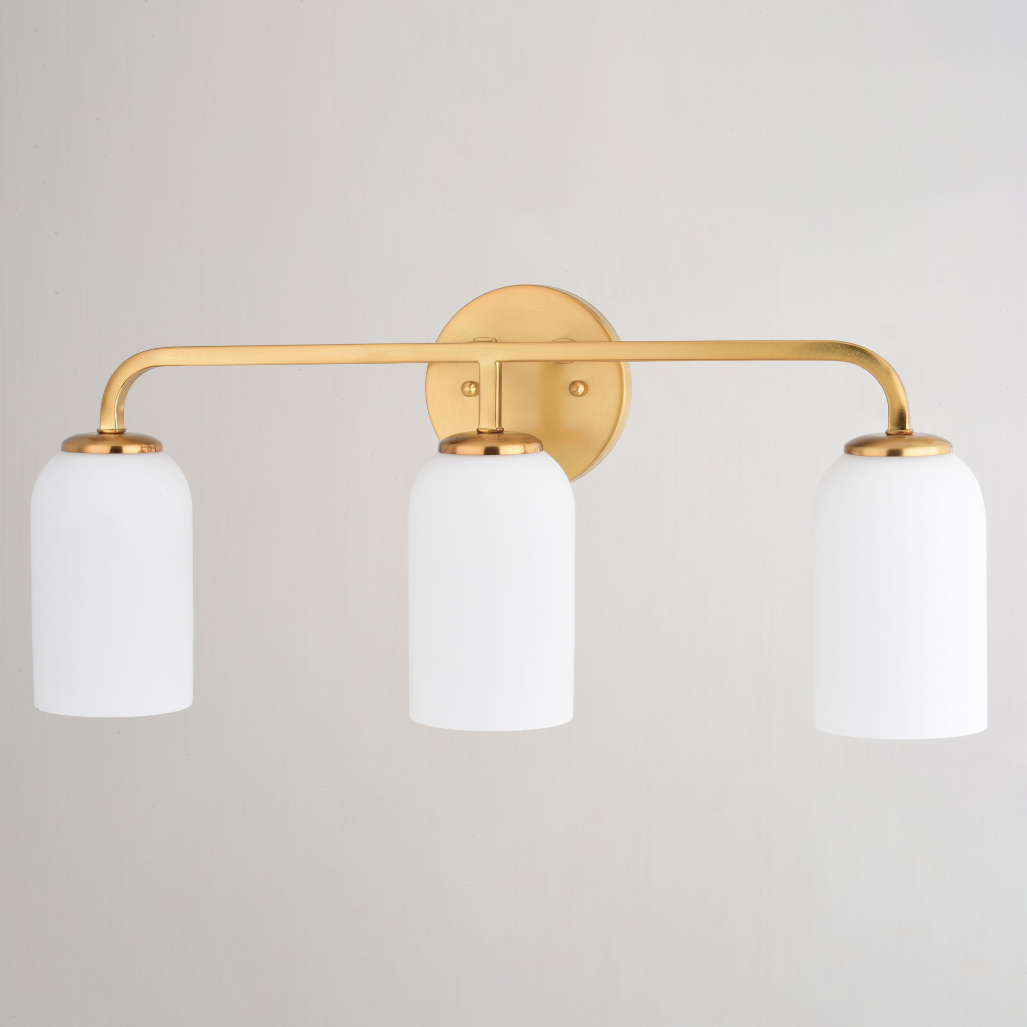 Item DescriptionIlluminate your bathroom or maybe even kitchen with the Shelby 3-Light Vanity. Its classic design and natural brass finish add a touch of timeless sophistication for both transitional and contemporary spaces. The elongated white dome-shaped glass shade emits a soft, diffused light, creating a warm and inviting atmosphere that's perfect to enhance your daily rituals or for relaxing after a long day.