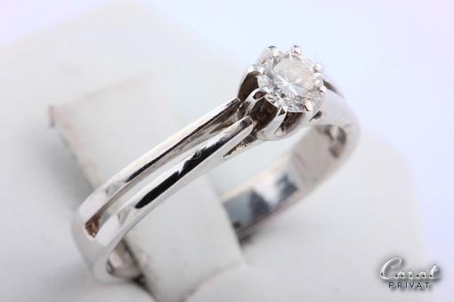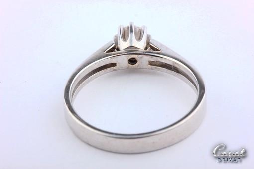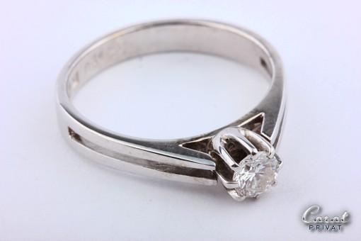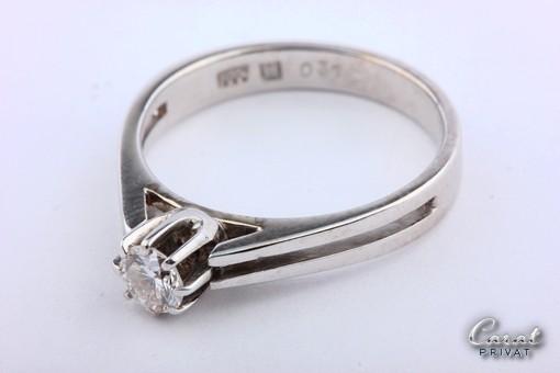 Dann werfen Sie doch einen näheren Blick auf diesen bezaubernden Brillant-Solitärring in 14k/585er Weißgold mit einem großen Brillanten von ca. 0,31ct in der feinen Qualität Weiß/Vvsi (entspricht einer Stufe nach Lupenrein). Das Gewicht des Brillanten wurde ebenso wie der Goldgehalt innen in die Ringschiene punziert.