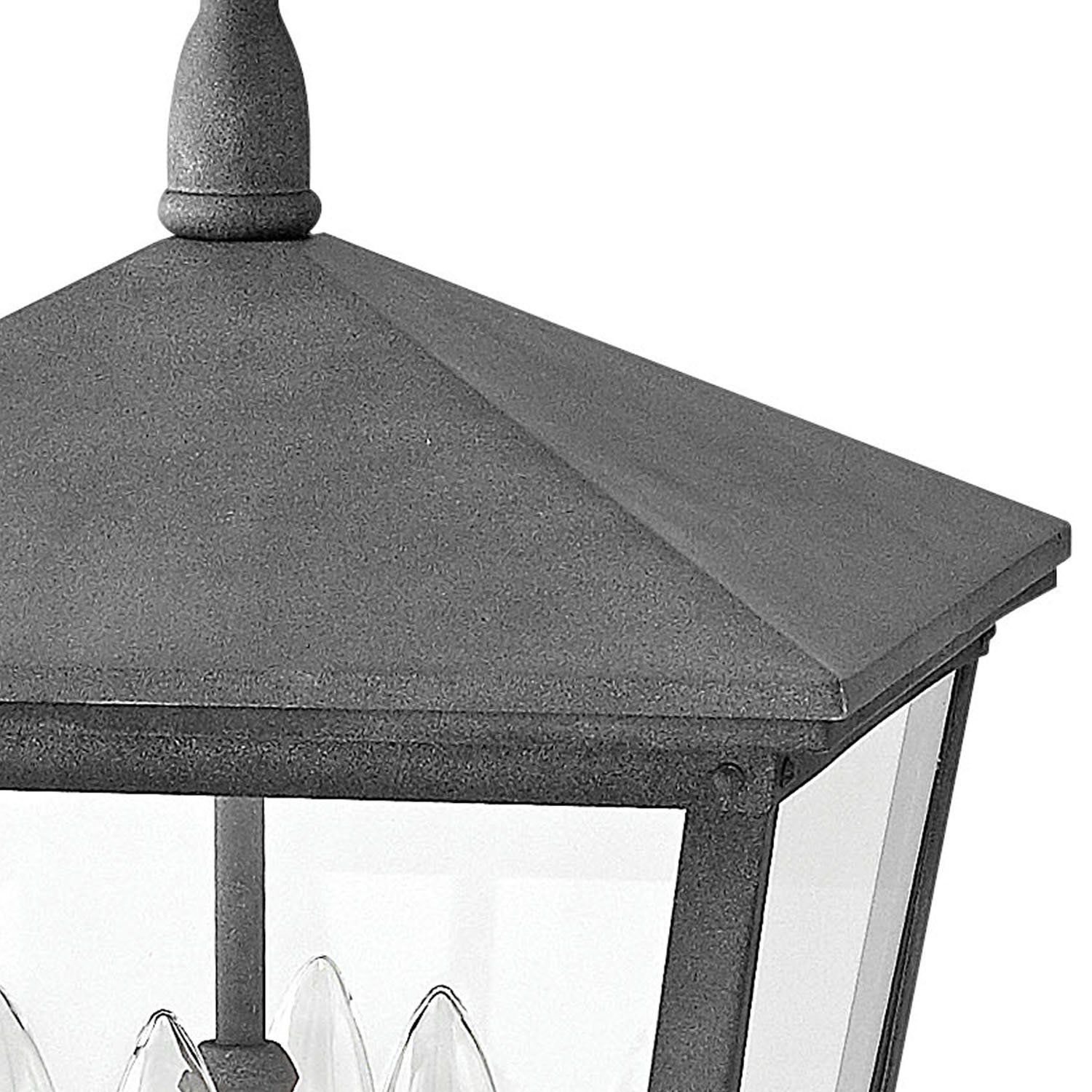 Item DescriptionTrellis is a traditional European hanging wall lantern design in an Aged Zinc finish with clear glass or Regency Bronze with clear seedy glass. The large scroll arm detail, cast loop finial and true rivet detail create a refined elegance.