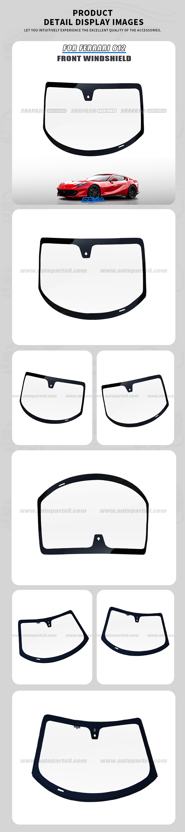 Brand New Front Windshield Glass for Ferrari 812