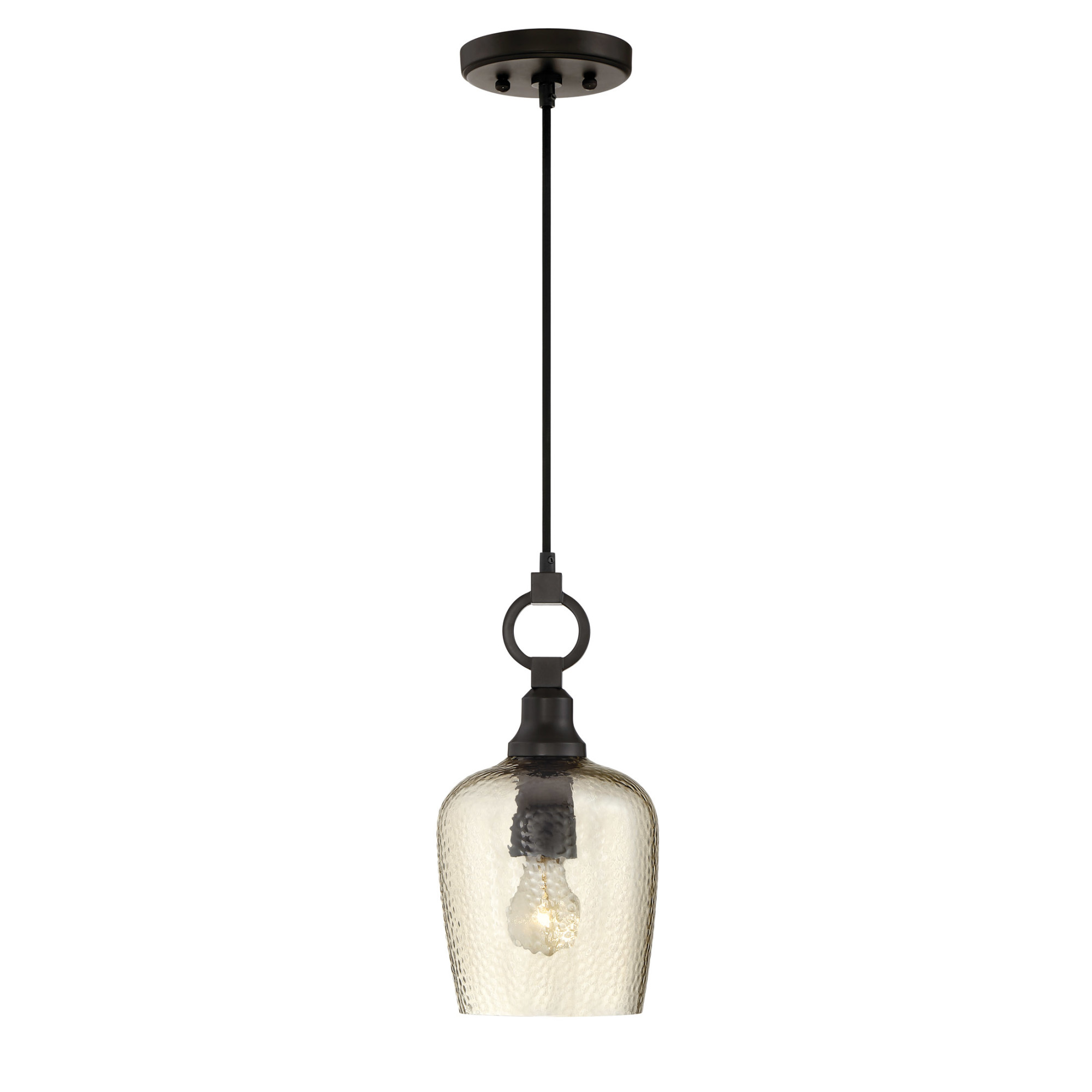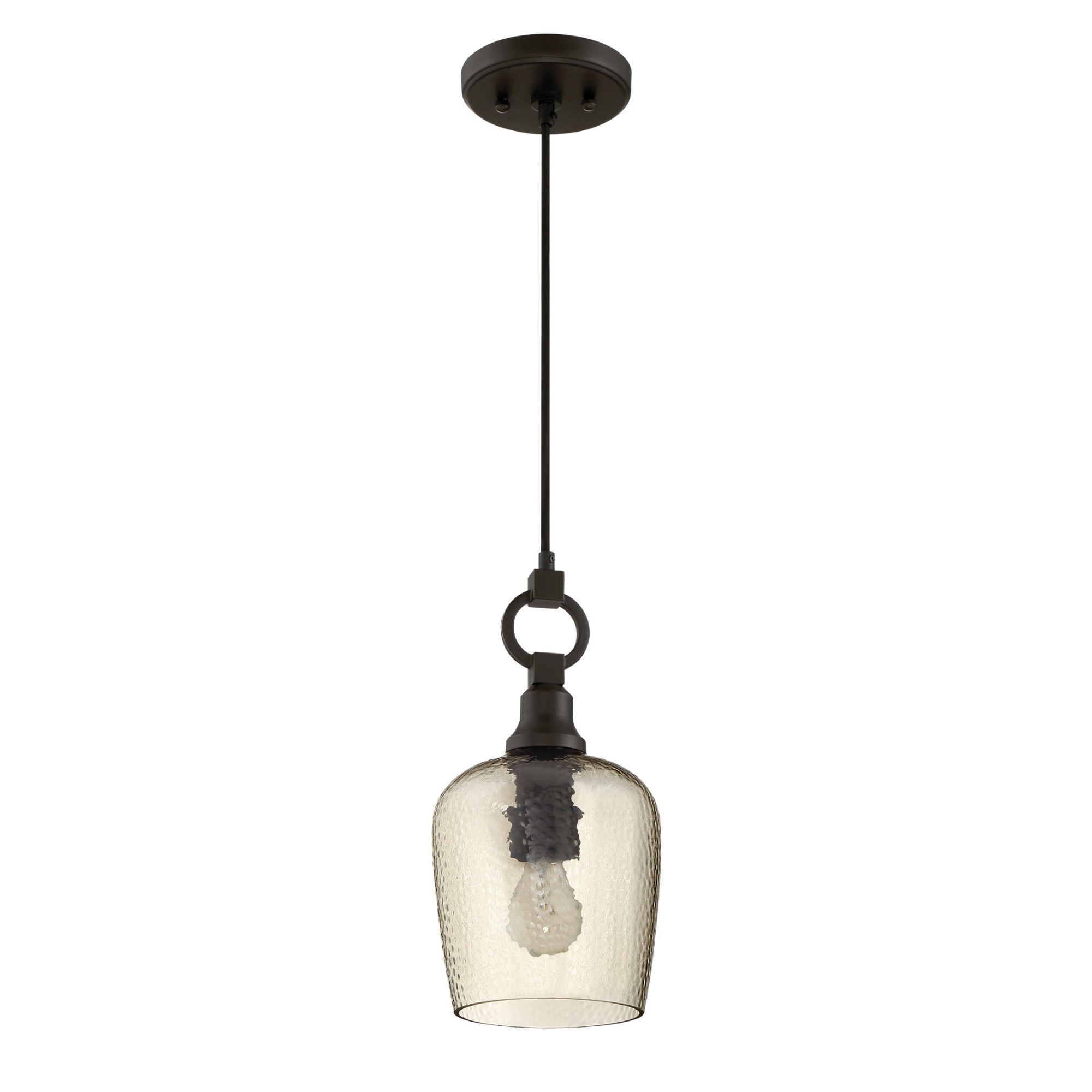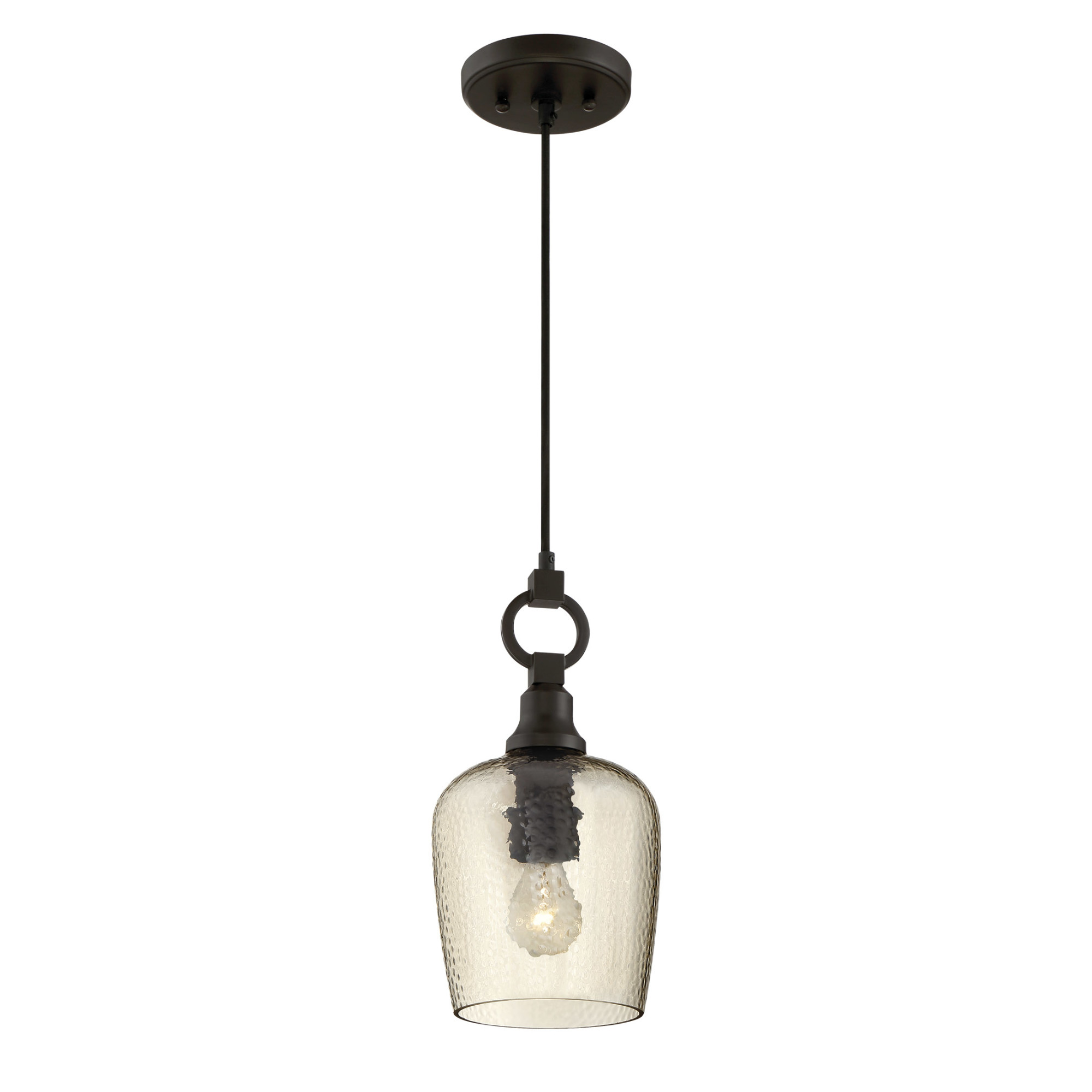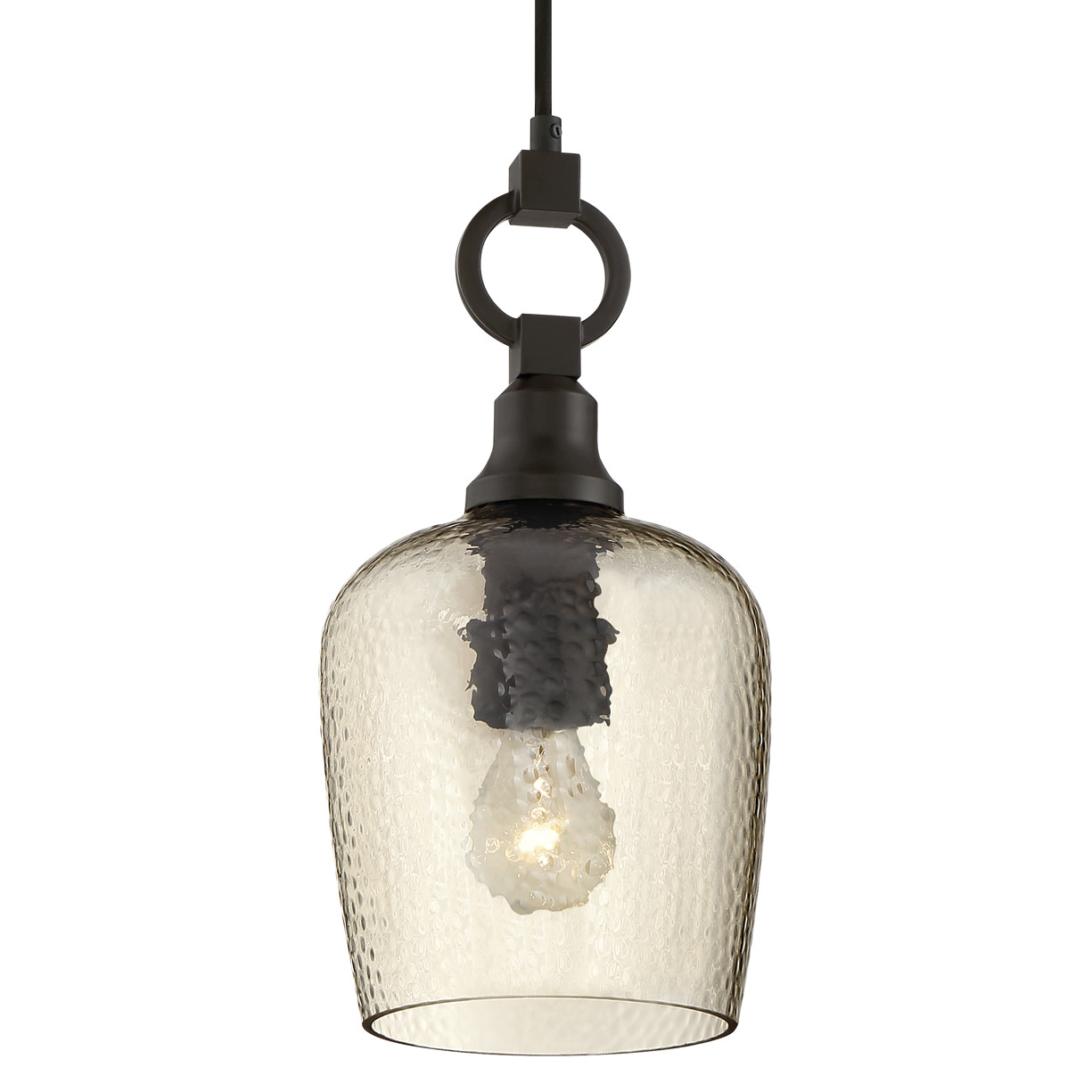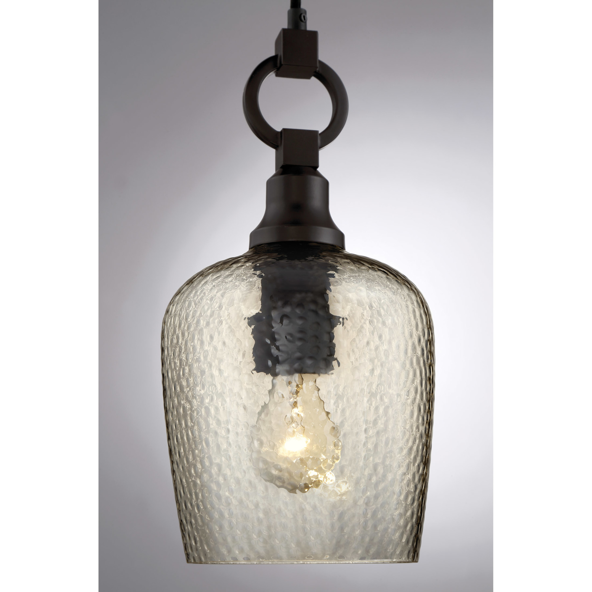 - Comes with smoked hammered glass shade
