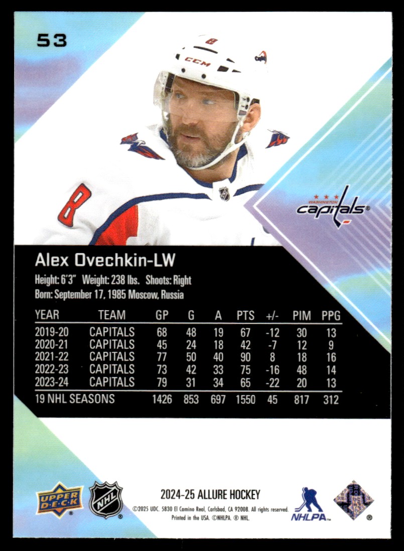 | Alex Ovechkin 2024-25 Upper Deck Allure Washington Capitals #53 |
