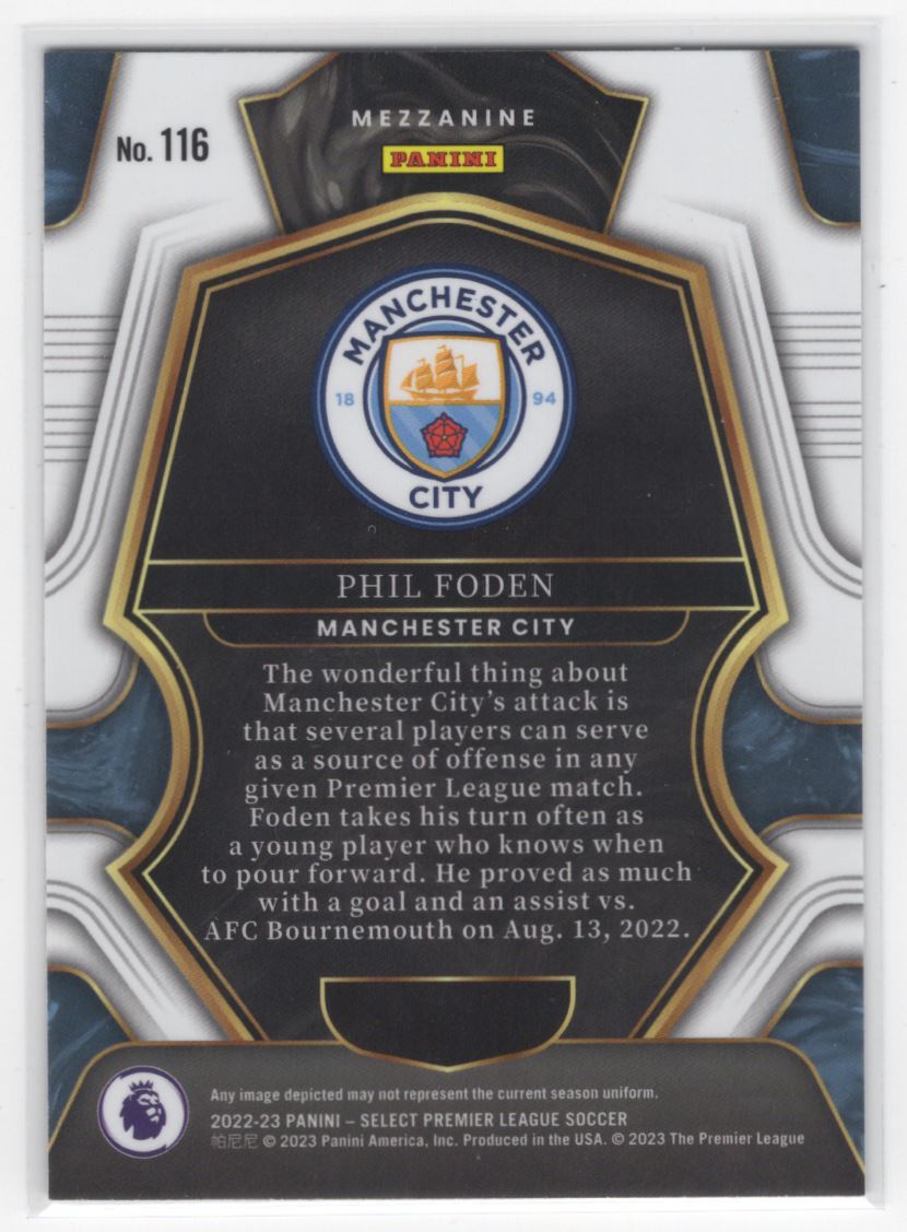 #116 Phil Foden 2022 Panini Select Premier League Mezzanine Manchester City