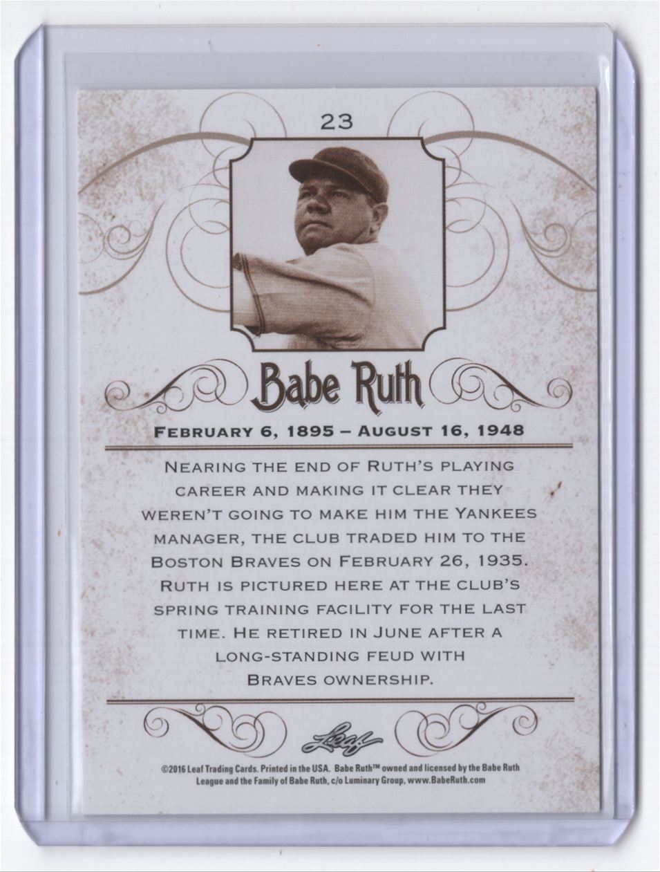 2016 Leaf Babe Ruth Collection Babe Ruth Boston Braves #23