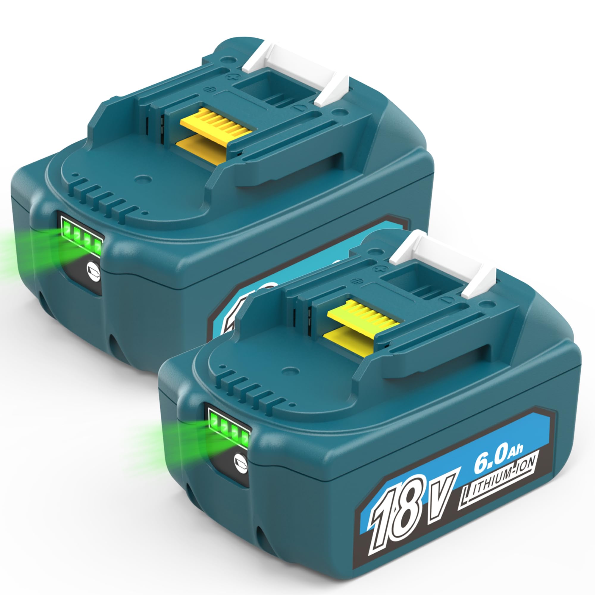 CHAUNVEN 2Pack 6.0Ah Replacement for Makita 18V Lithium 5.0Ah-Blue, bule