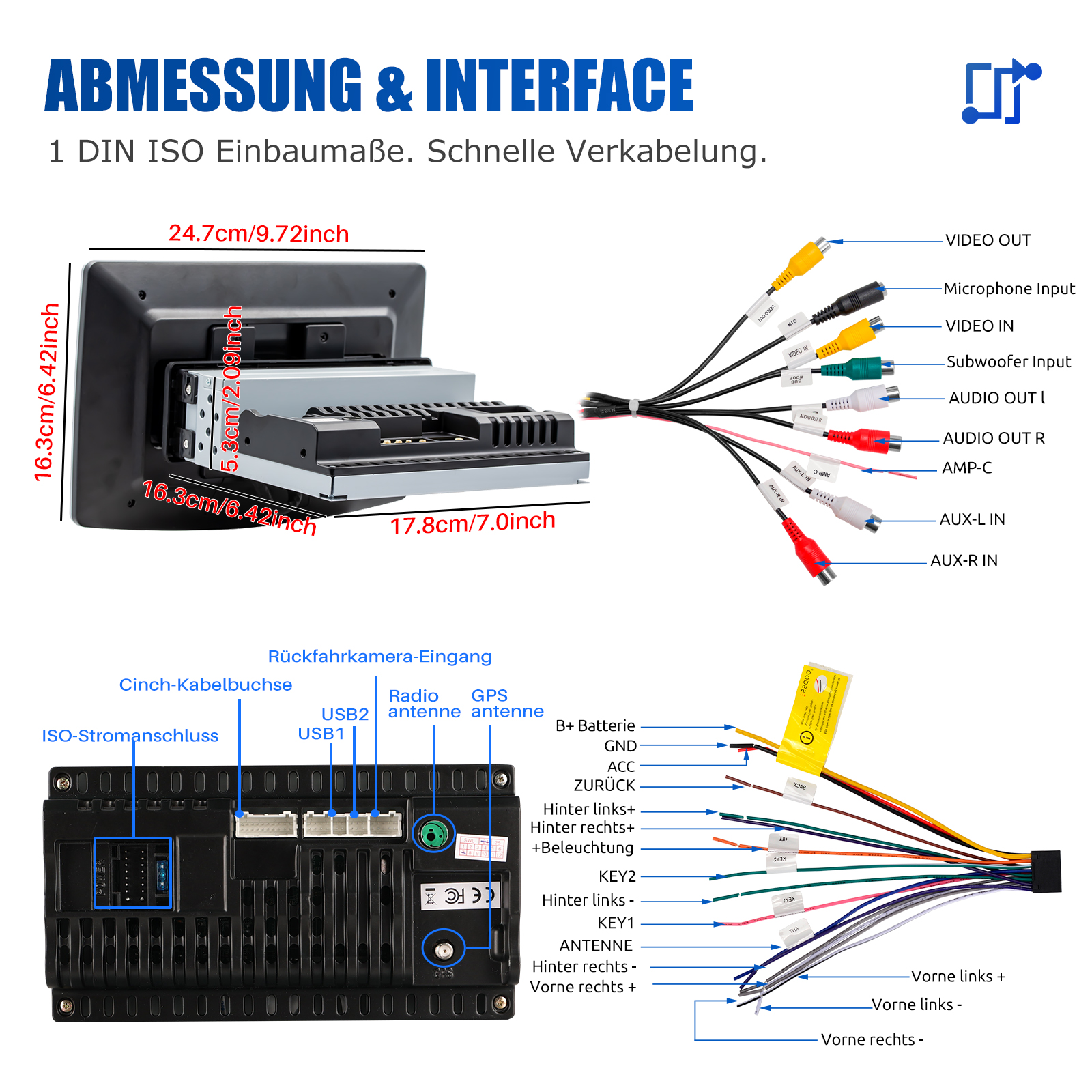RDS/FM-Radio und Bluetooth und ASP Sound: Unterstützt Bluetooth 4.1, mit integriertem Mikrofon, damit Sie während der Fahrt freihändig telefonieren können. Unterstützt den Zugriff auf das Telefonbuch, die Musikwiedergabeschnittstelle usw. RDS unterstützt. Sie können 18 FM Radiosender speichern. Eingebauter ASP-Chip. Unterstützt 32-Band-EQ-Einstellung, die nach Ihren persönlichen Vorlieben eingestellt werden kann.Der Ihrem Originalsound sehr ähnlich ist.4 x 45W Verstärker, Surround-Sound und Subwoofer-Ausgang.