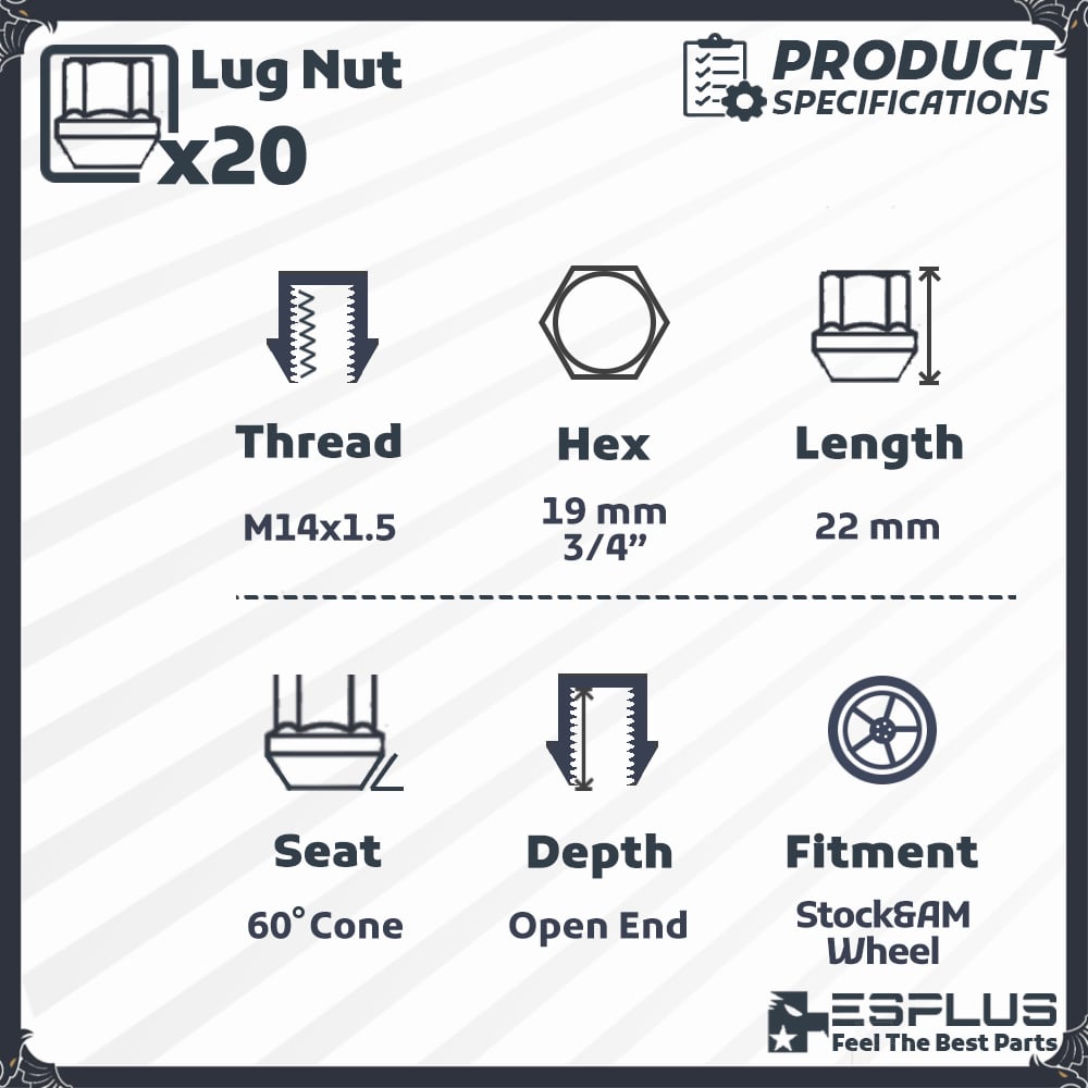 Following chart is designated for Thread Pitch check only. Due to aging, your studs may have been changed. Please compare the shape and thread mark with your existing lug nut before buying.