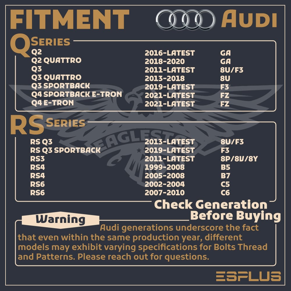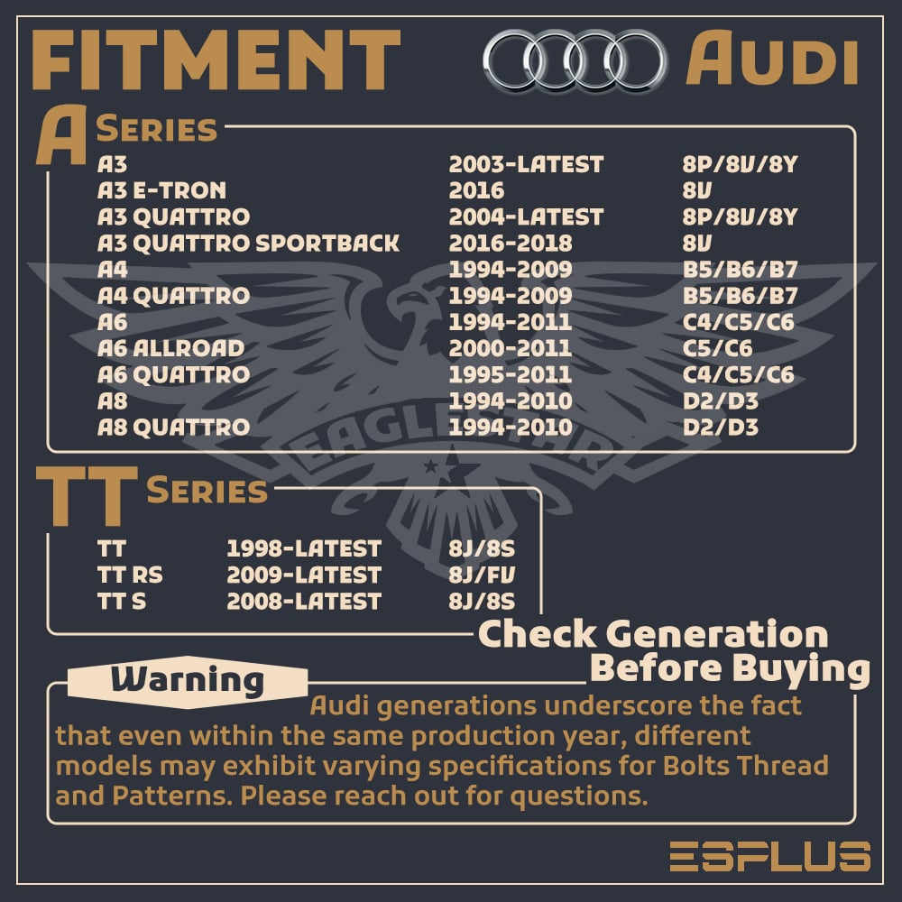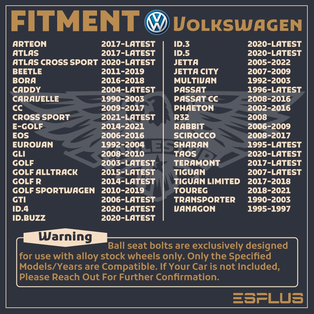 Compatibility chart from Ebay is only designated for Bolt Pattern, Center Bore And Thread Pitch check. The actual fitment varies based on the requirements of wheels. Lug nuts/bolts seat has to strictly follow the wheel condition. If you are not sure, please do not hesitate to ask customer service.