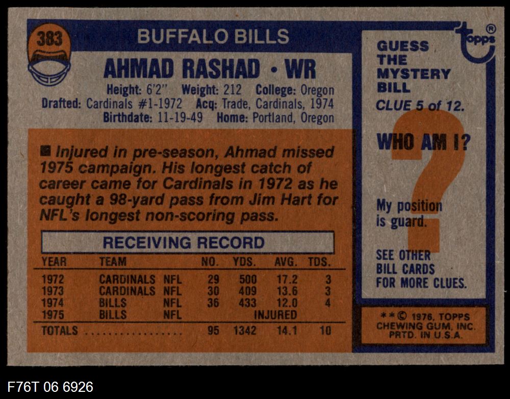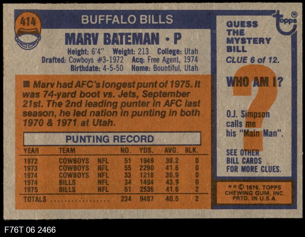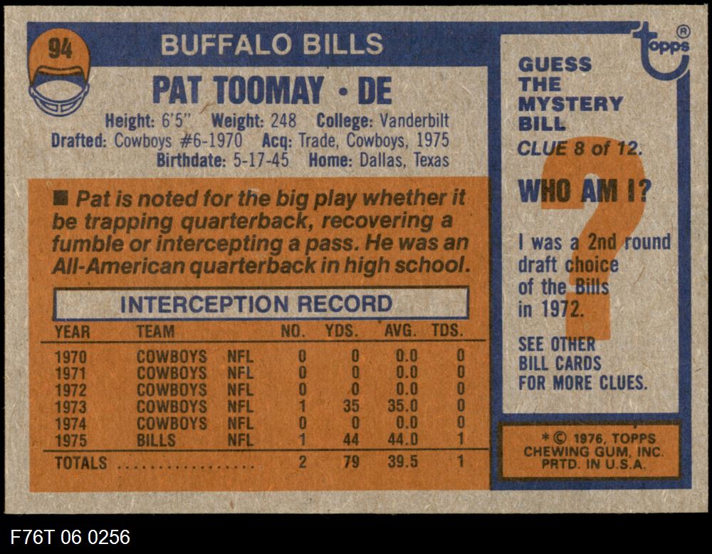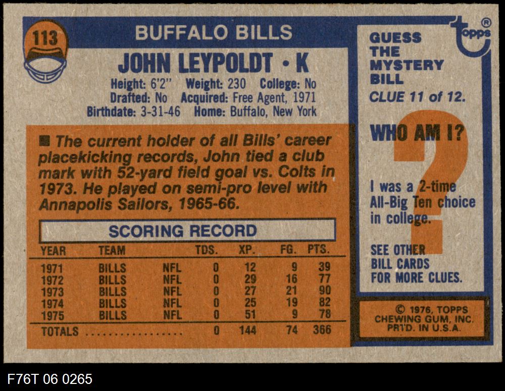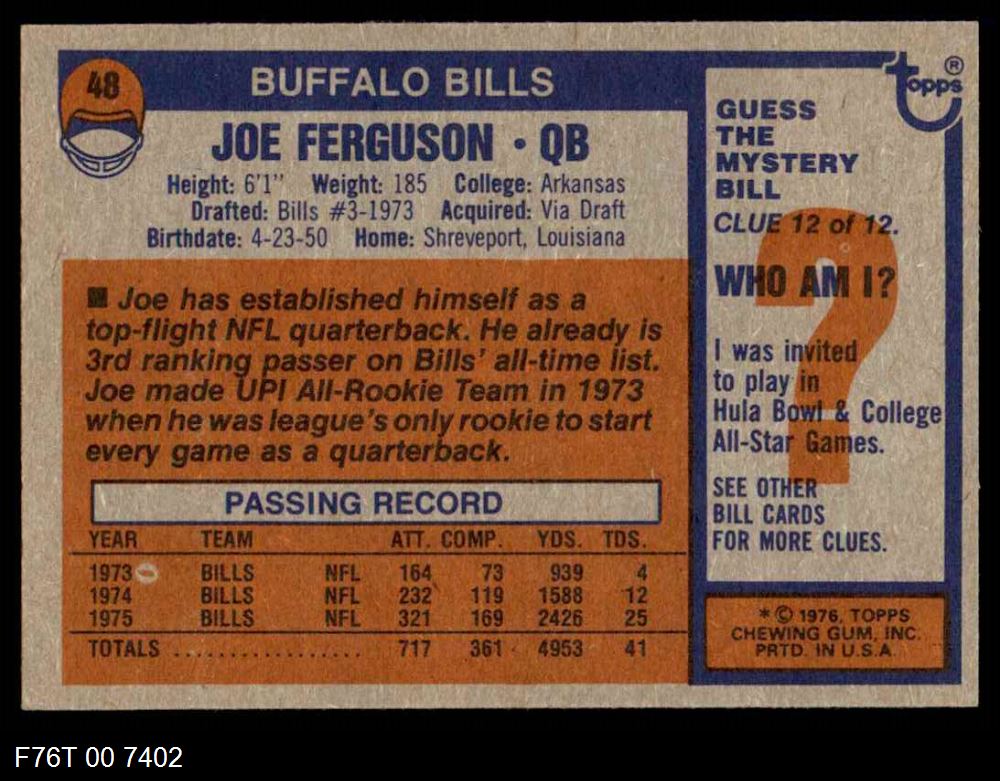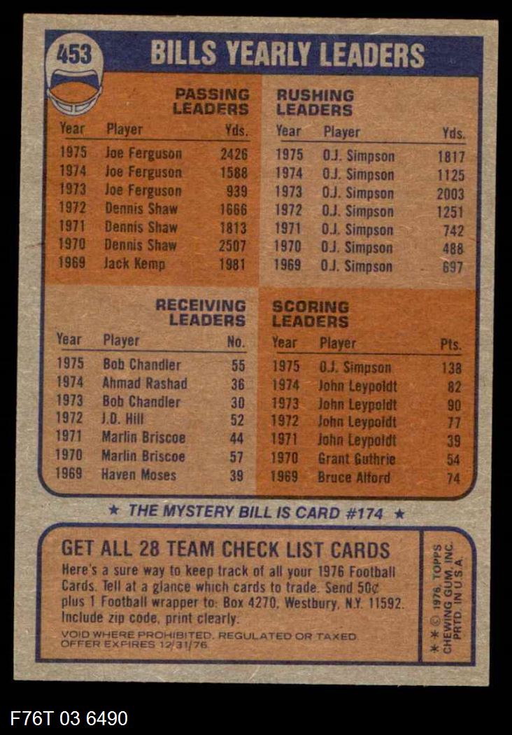 This 1976 Topps Buffalo Bills Team Set contains the 1976 Topps Bills football cards and makes a great gift for any Bills fan. ?With an inventory of over 20,000 team sets, Dean's Cards has Team Sets & Near Team Sets for just about every team, in multiple conditions, for all sports, for most major sets issued between 1909 and 1979.