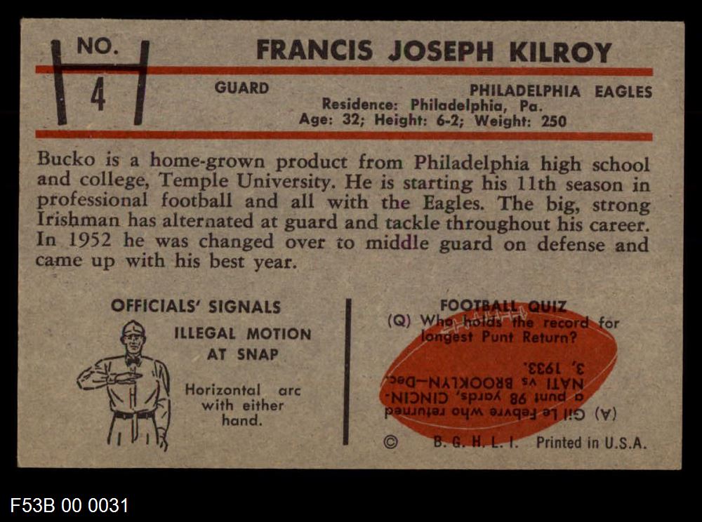 1953 Bowman Philadelphia Eagles Team Set 4 - VG/EX 6664657