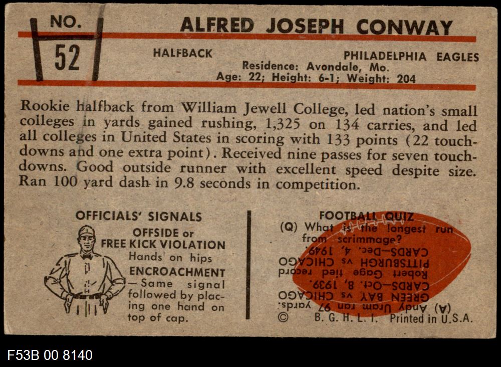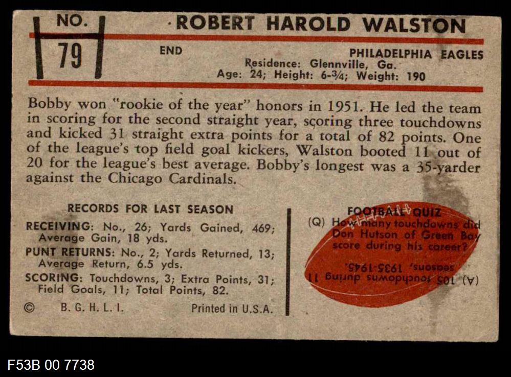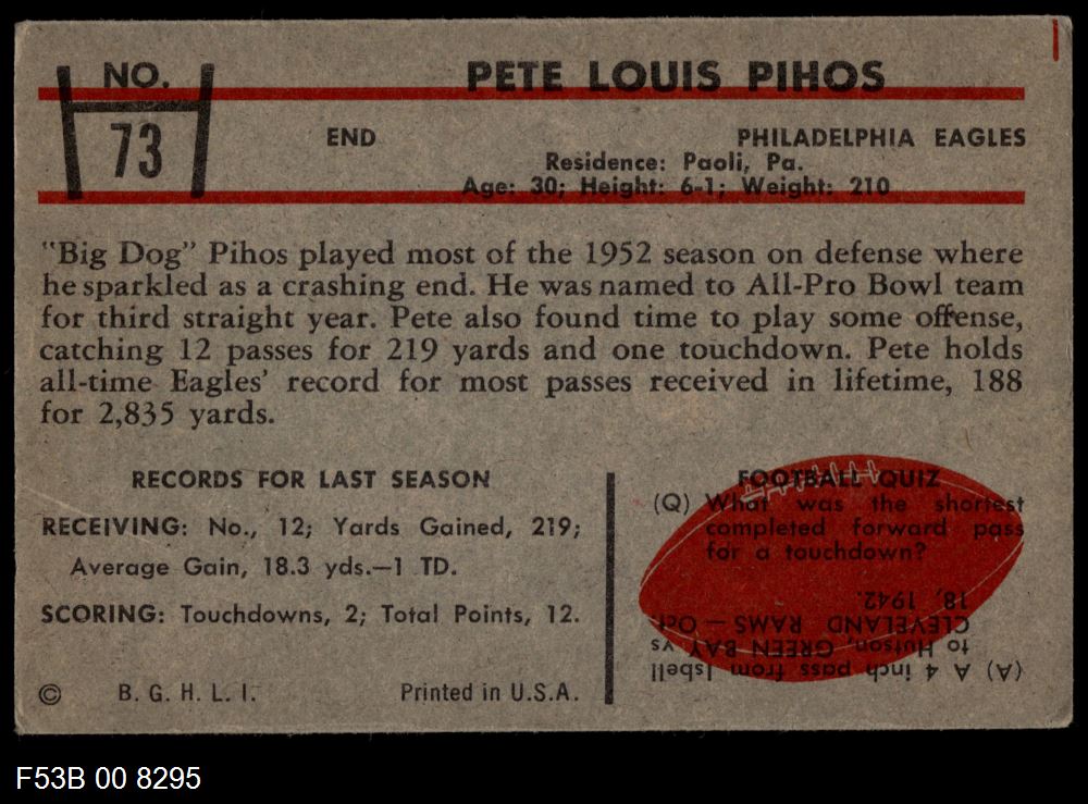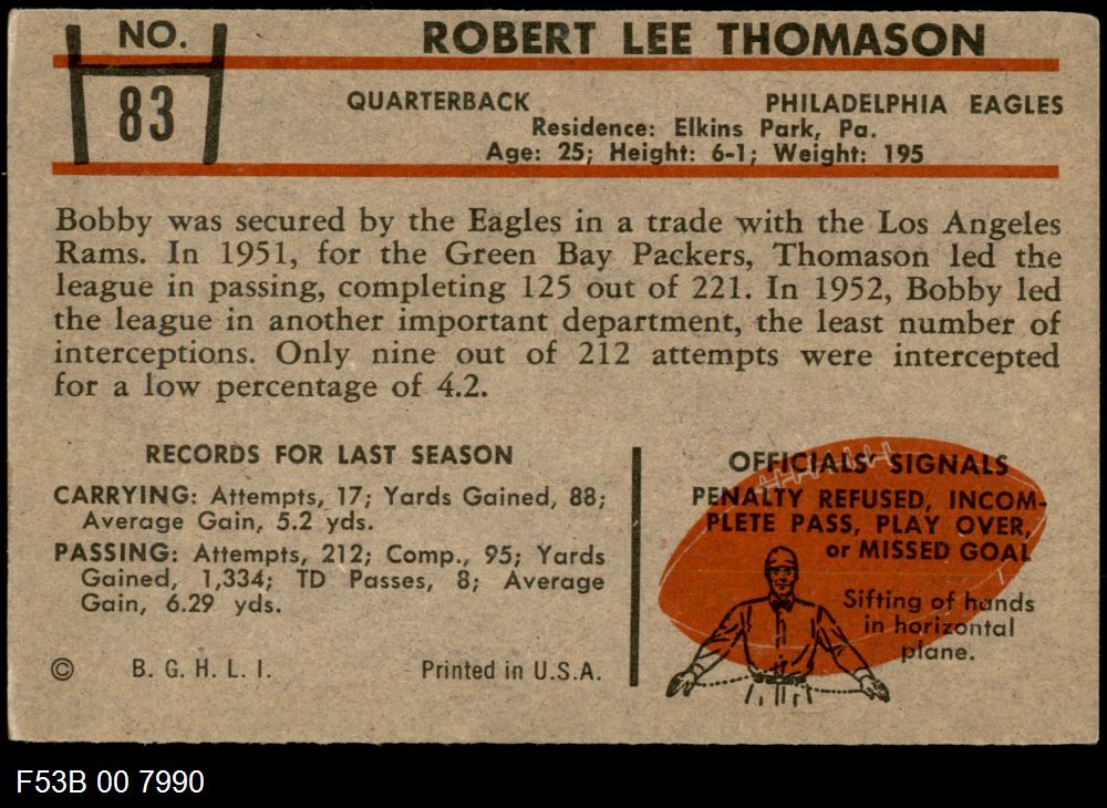 This 1953 Bowman Philadelphia Eagles Team Set contains the 1953 Bowman Eagles football cards and makes a great gift for any Eagles fan. ?With an inventory of over 20,000 team sets, Dean's Cards has Team Sets & Near Team Sets for just about every team, in multiple conditions, for all sports, for most major sets issued between 1909 and 1979.