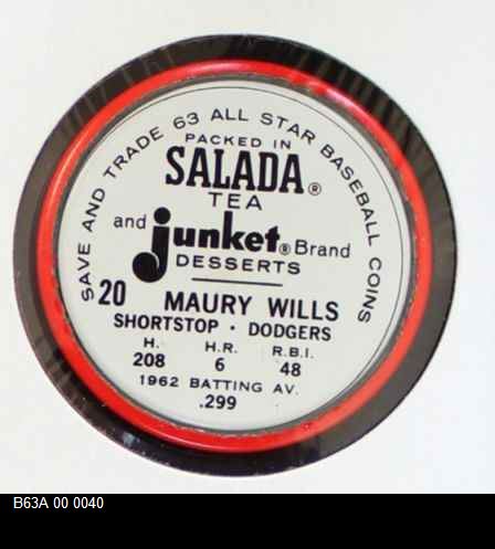 | 1963 Salada Metal Coins #20 Maury Wills | 6 - EX/MT | Front | Back |