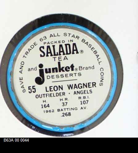 | 1963 Salada Metal Coins #55 Leon Wagner | 6 - EX/MT | Front | Back |