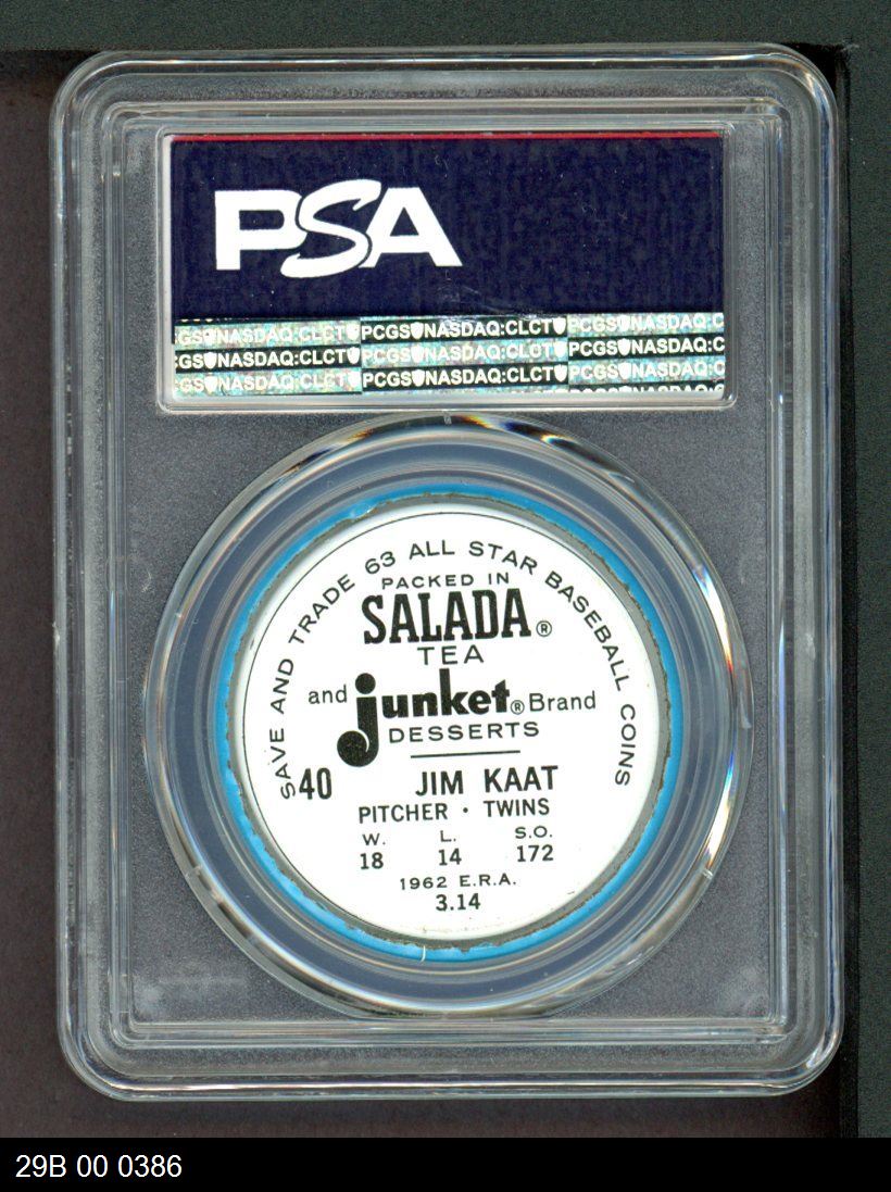 | 1963 Salada Metal Coins #40 Jim Kaat | PSA 7 - NM | Front | Back |
